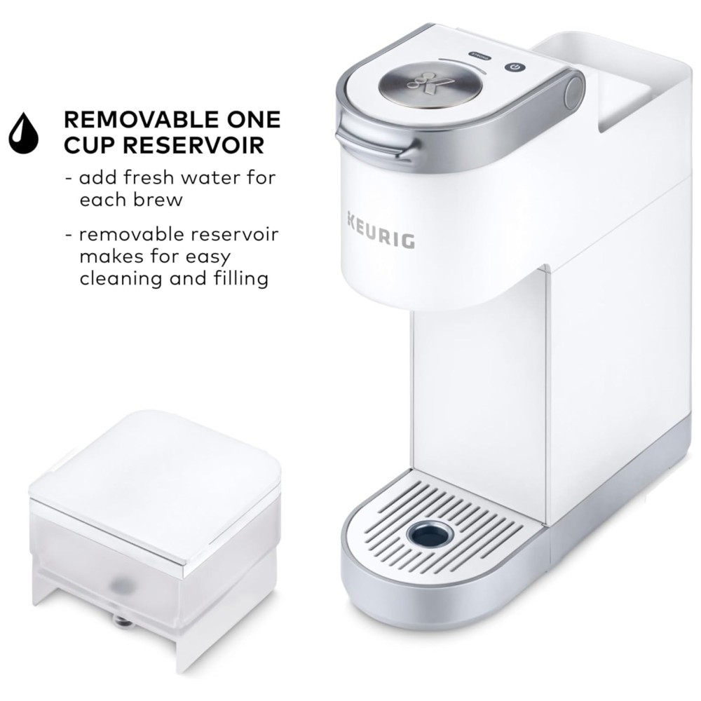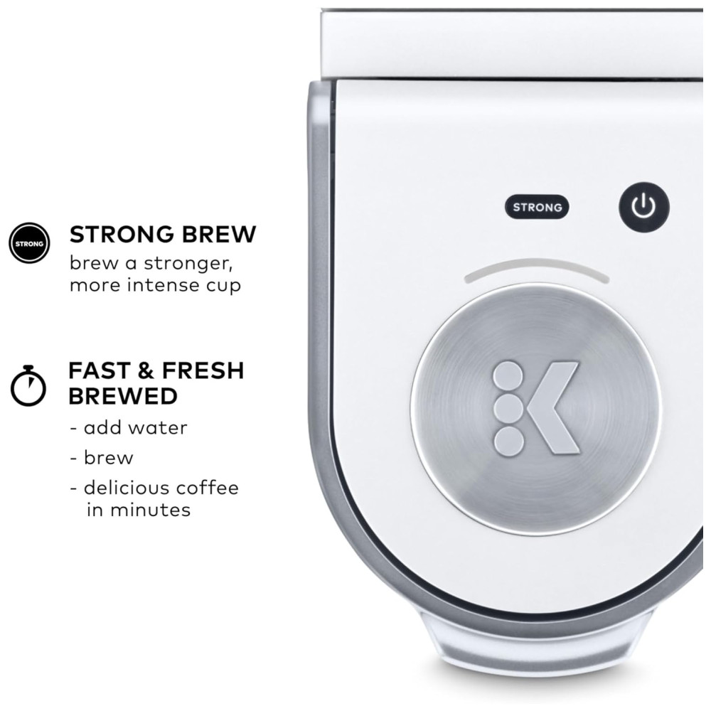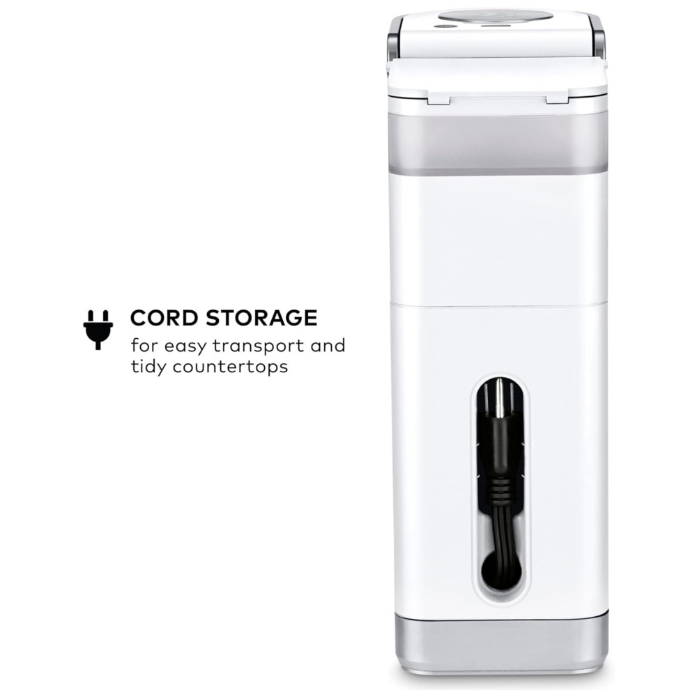 Além disso, a cafeteira possui um reservatório removível de xícara única, uma unidade de armazenamento de até 9 cápsulas KCup e armazenamento de cabo, o que torna a cafeteira portátil e perfeita para levar a qualquer lugar. A bandeja coletora removível também é amigável para canecas de viagem de até 7,0 de altura e contém uma bebida acidental completa para fácil limpeza.