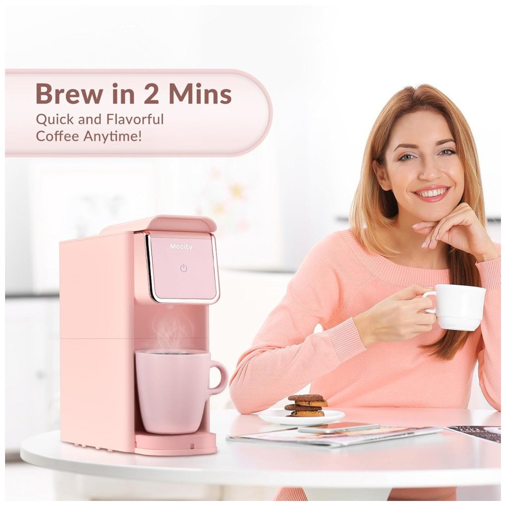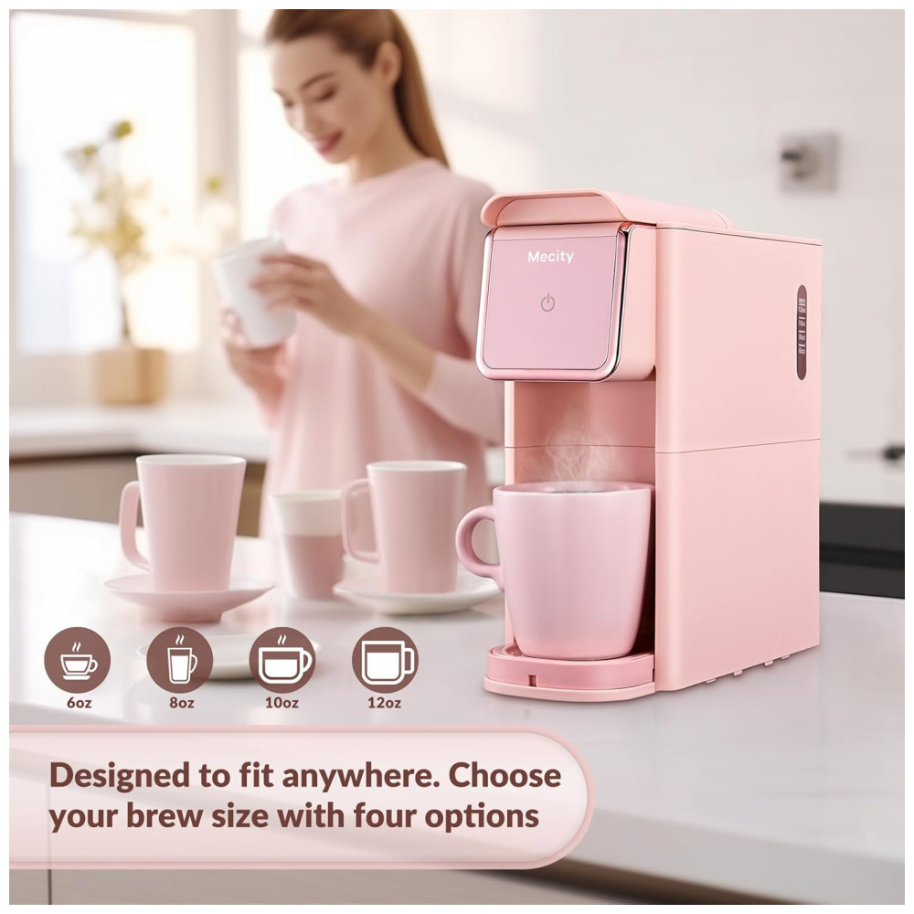 Máquina de Café Compatível com Cápsula K Cup Café moído ou Chá a Granel 110V 1000W Mecity Rosa