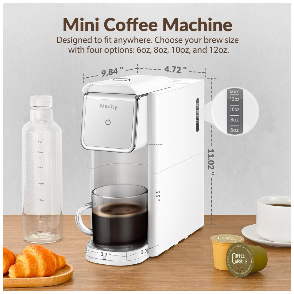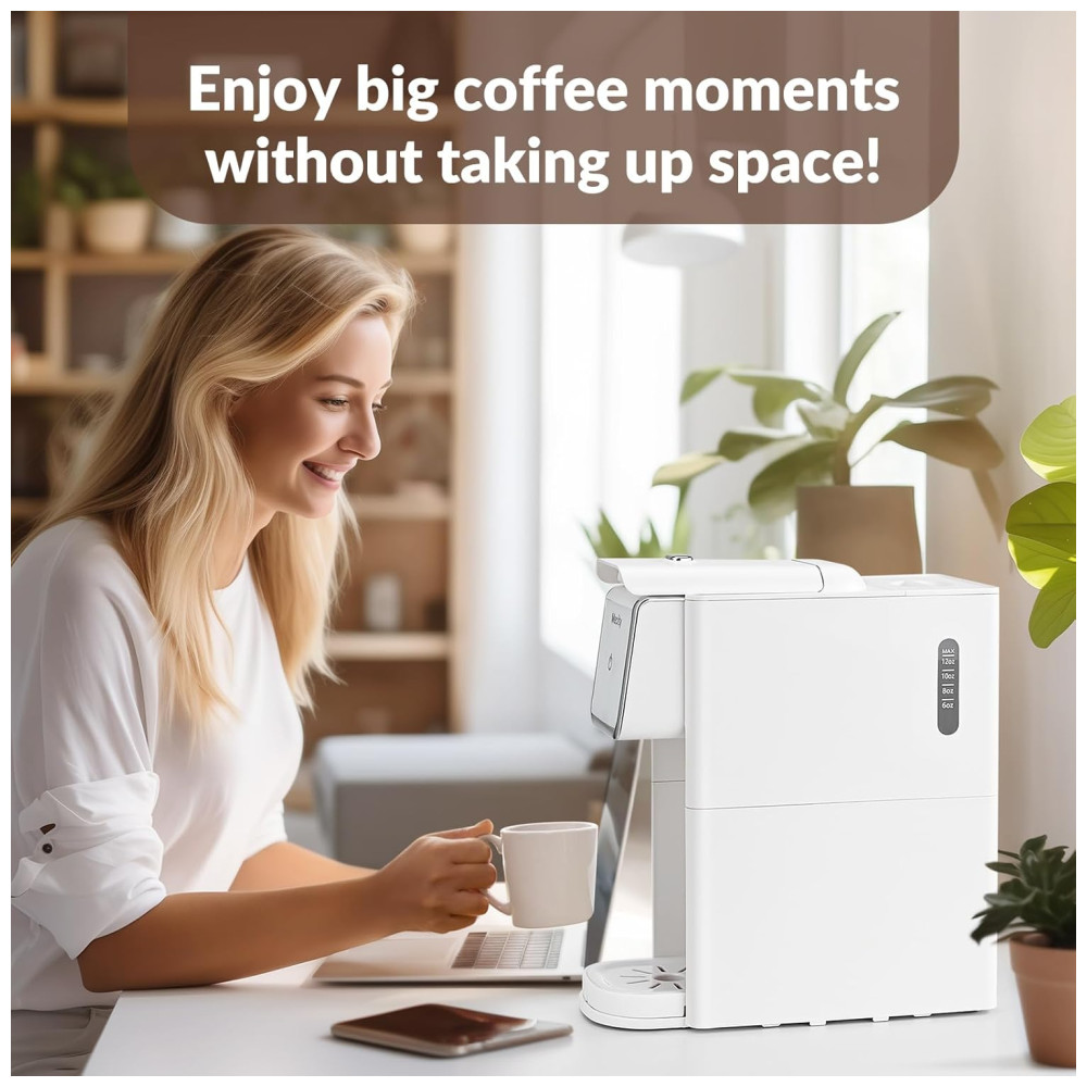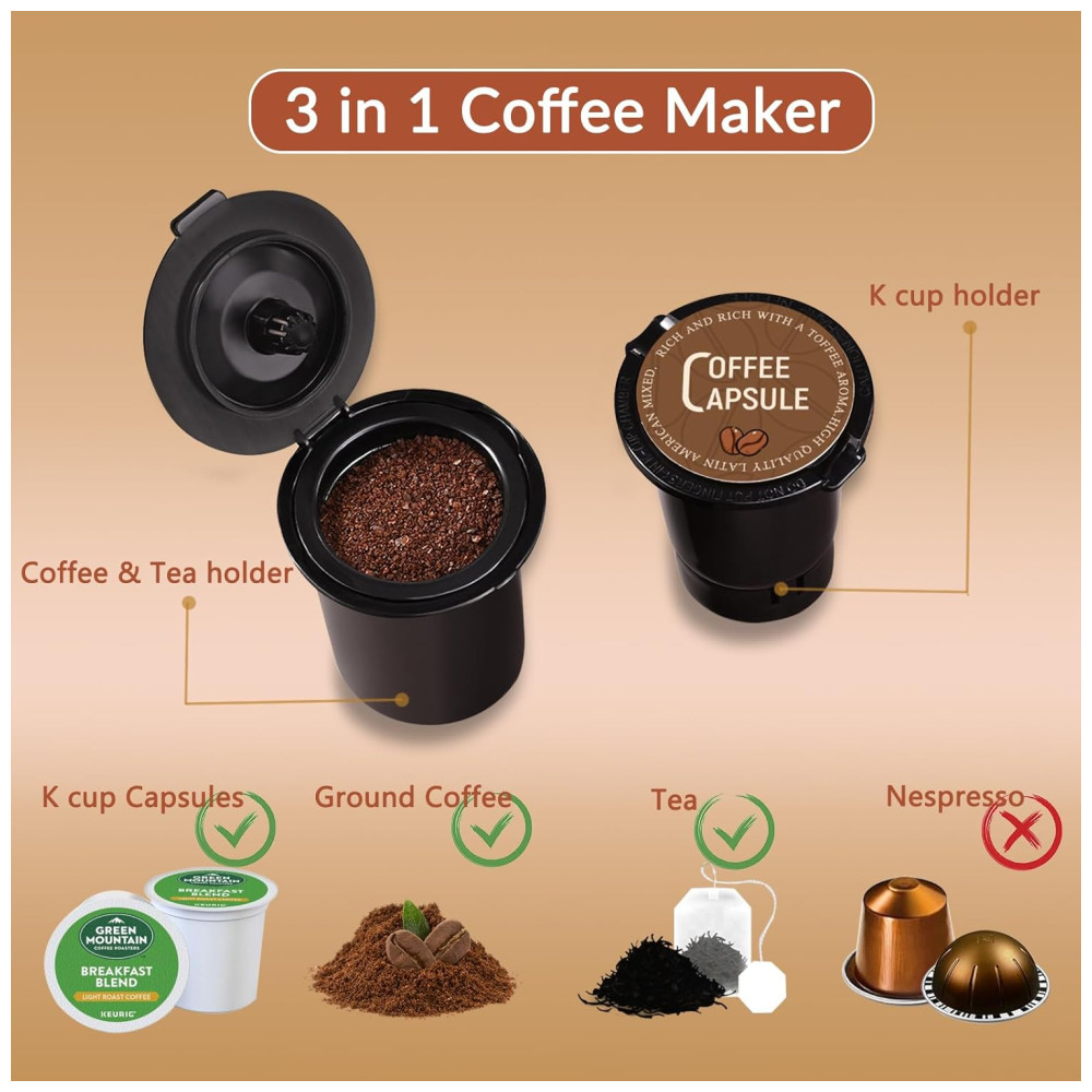 Com dois porta filtros inclusos, um para cápsulas de café Kcup e outro para café moído, é possível desfrutar de diferentes tipos de bebidas com esta pequena cafeteira. Seu design compacto economiza espaço na bancada e é adequado para viagens, sendo especialmente útil para RVs, dormitórios e apartamentos.