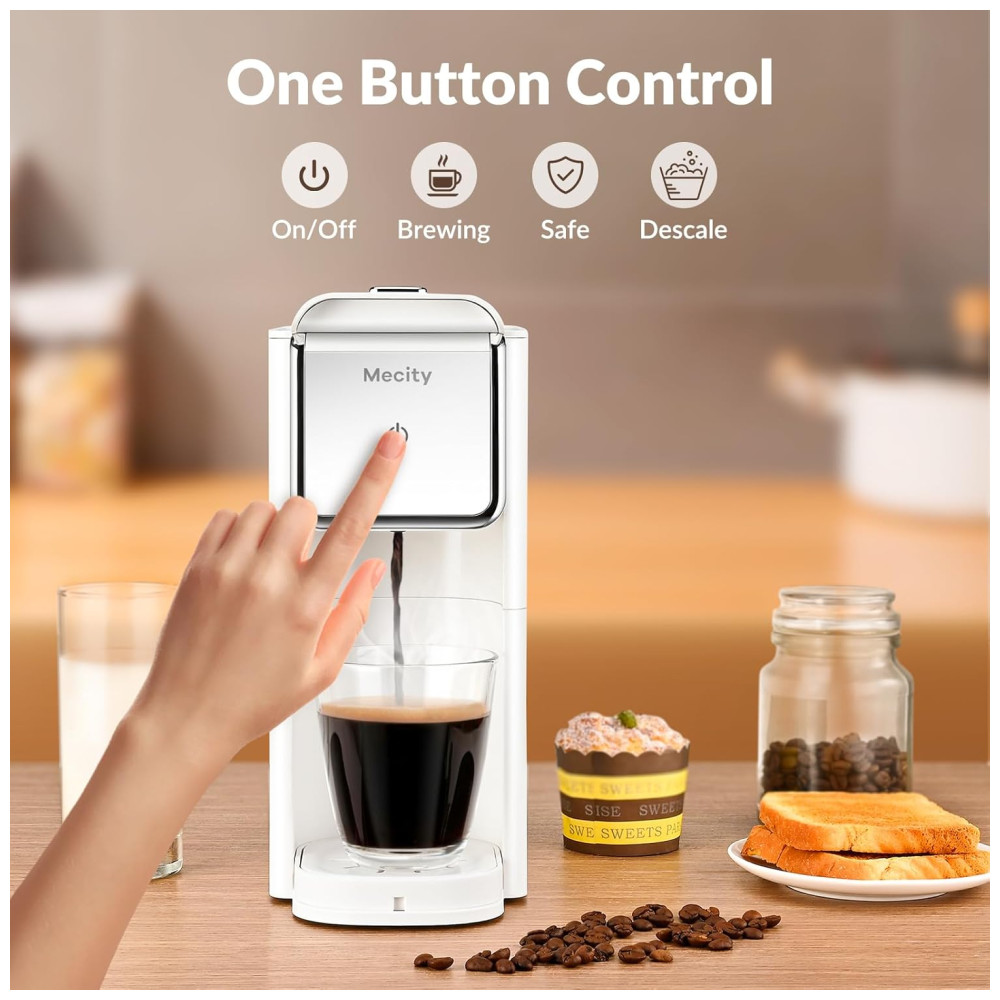 Máquina de Café Compatível com Cápsulas Café moído ou Chá a Granel 110V 1000W Mecity Branca