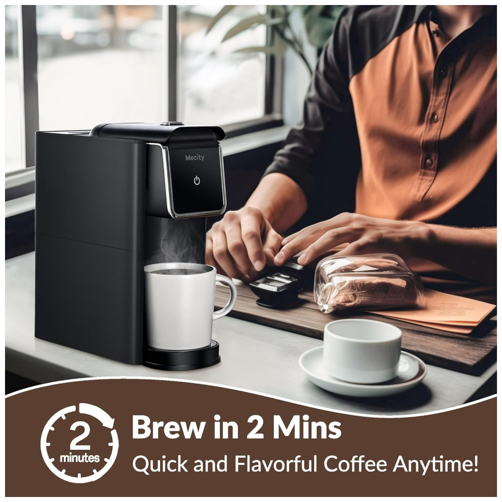 Máquina de Café Compatível com Cápsulas Café moído ou Chá a Granel 110V 1000W Mecity Preta