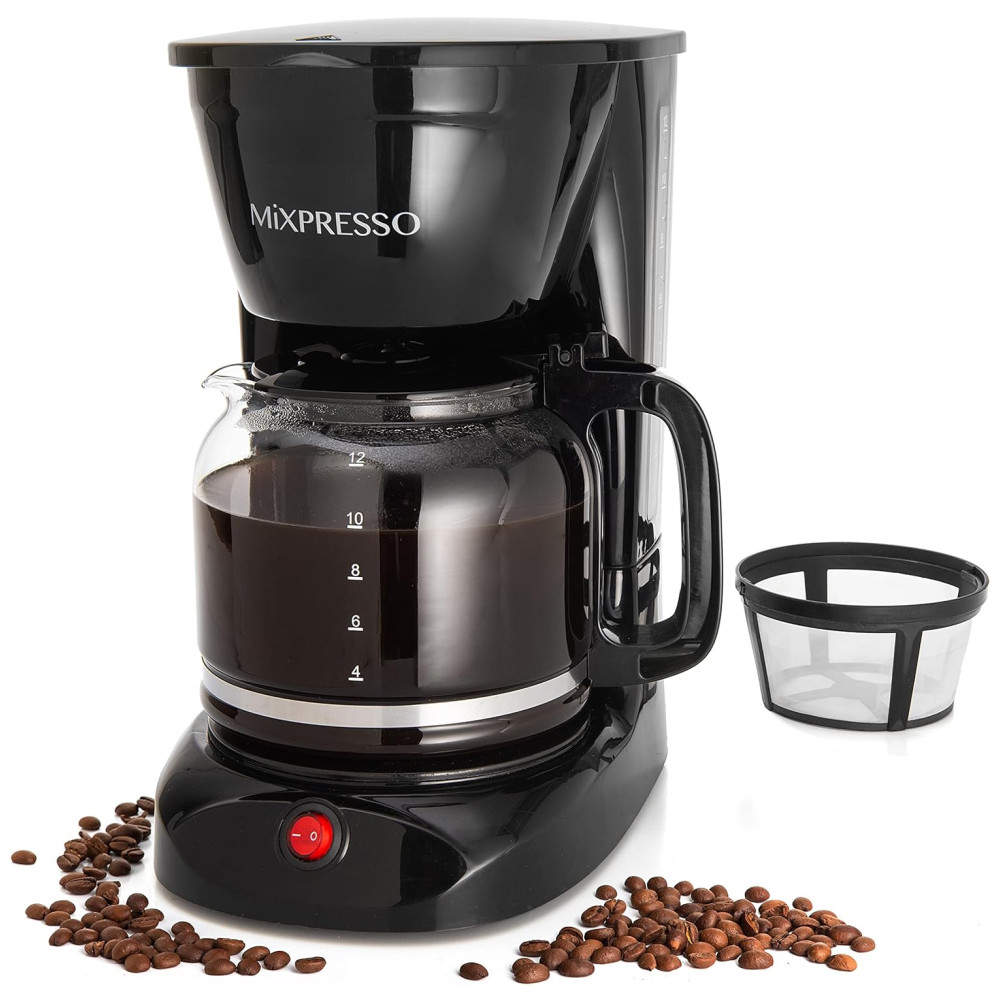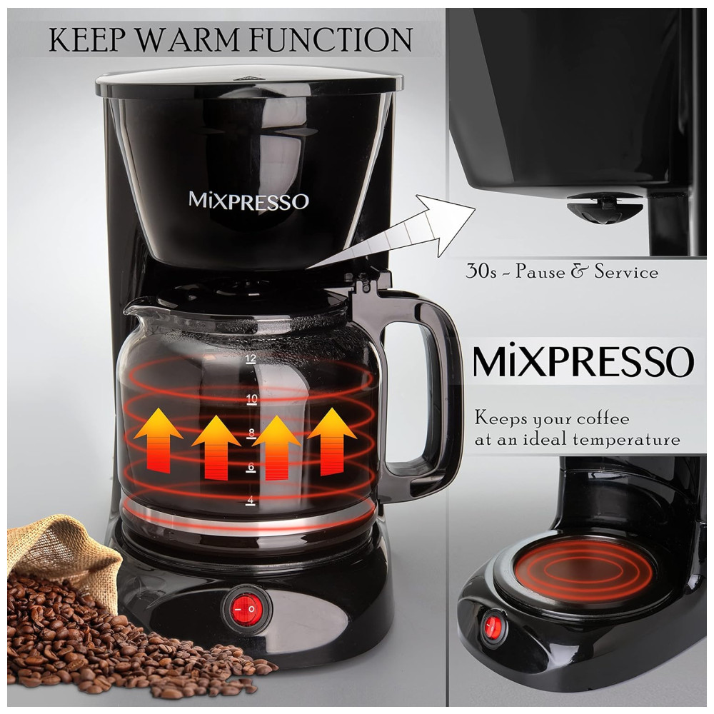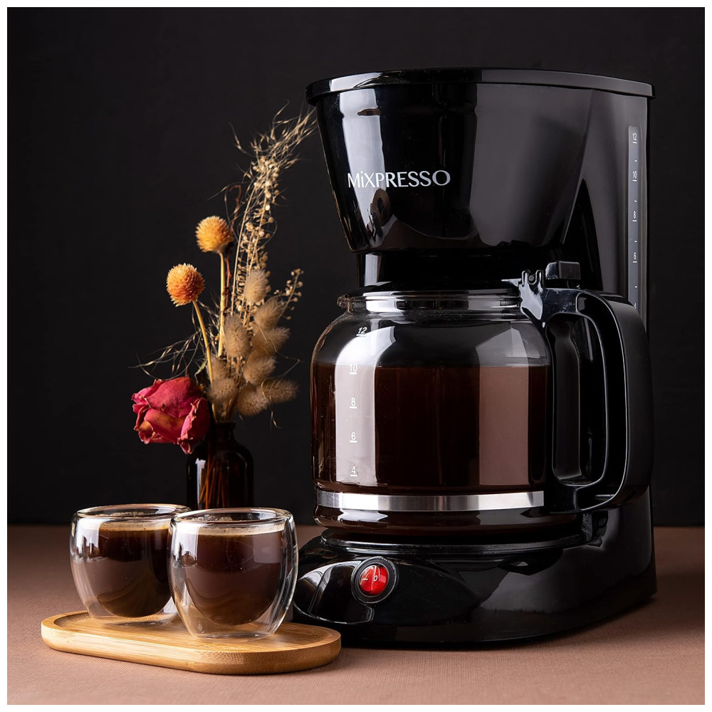 Máquina de Café Elétrica Mixpresso 12 xícaras Com Desligamento Automático Filtro Reutilizável Jarra de Vidro Borossilicato Janela de Nível de Água