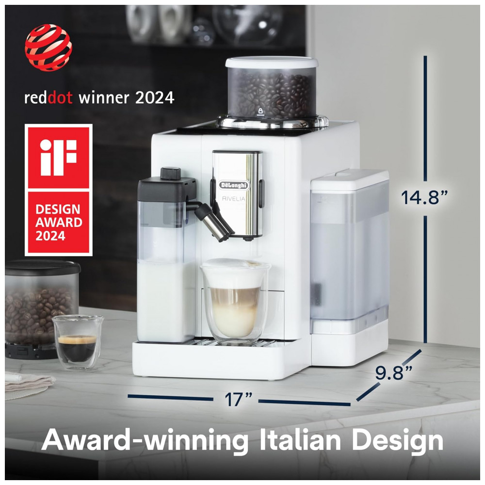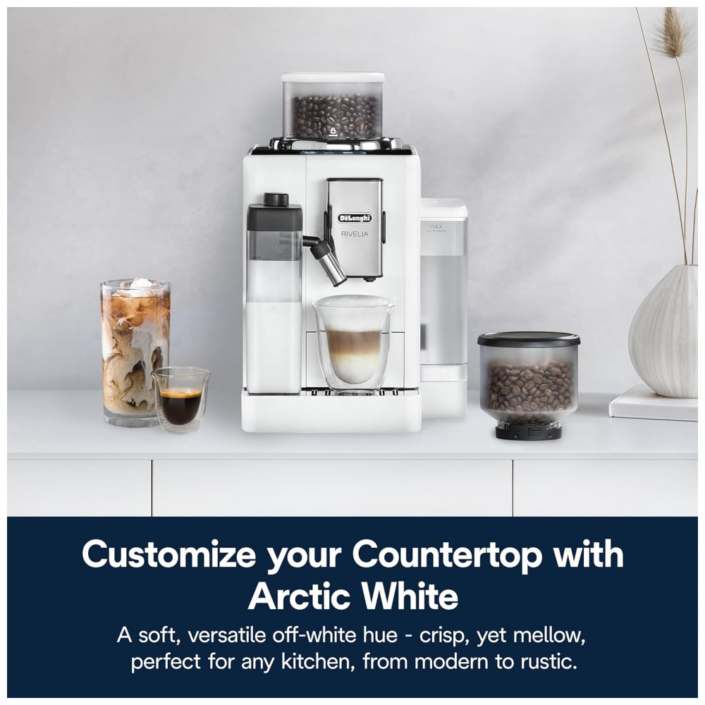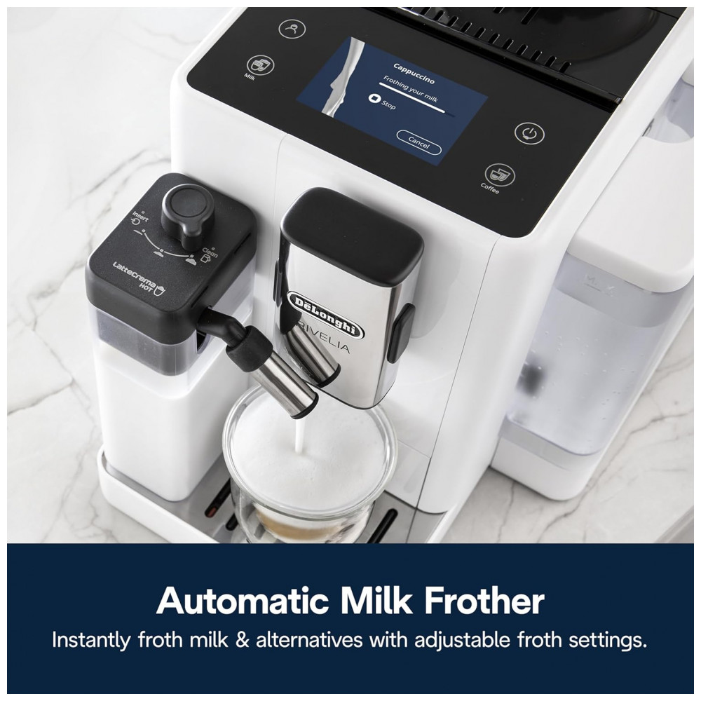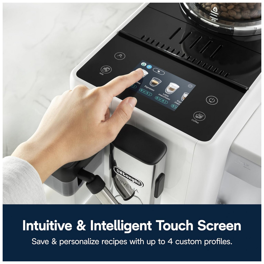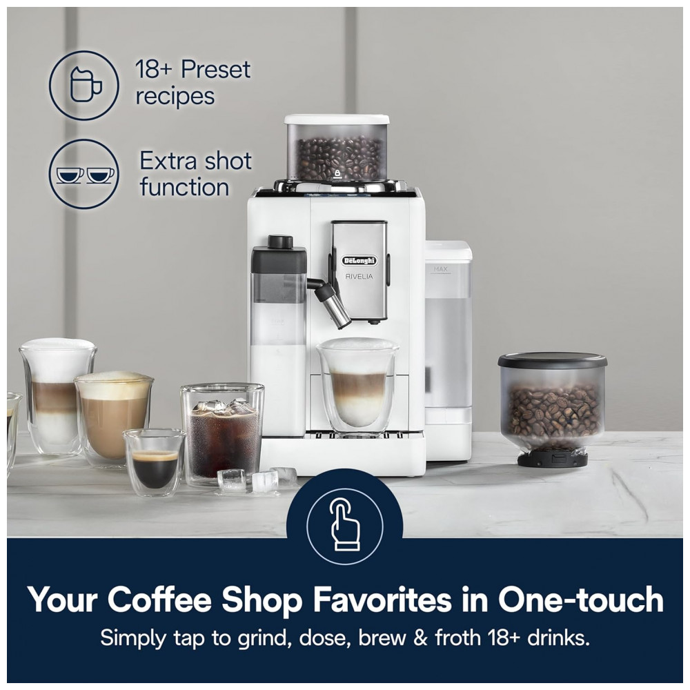 Máquina de Café Espresso Automática De’Longhi Rivelia Branca Moedor Integrado Espumador Automático Bean Switch System 110V