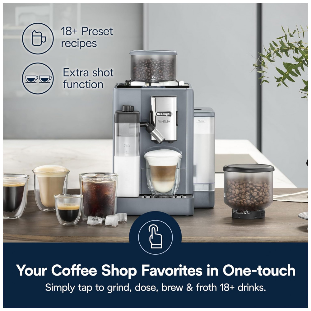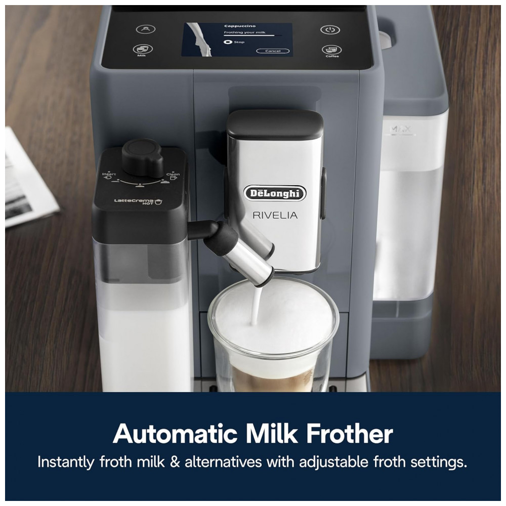 Máquina de Café Espresso Automática De’Longhi Rivelia Cinza Pebble Moedor Integrado Espumador 120V