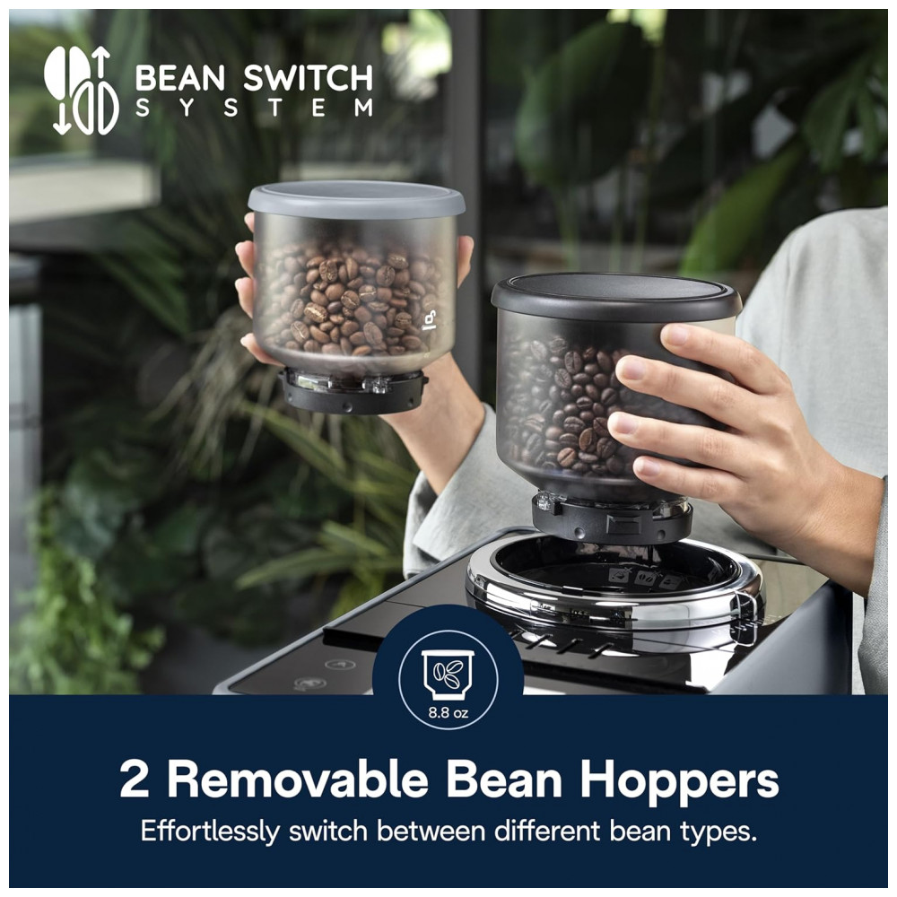 A Máquina de Café Espresso Automática De’Longhi Rivelia oferece uma experiência profissional com operação totalmente automática para moagem, dosagem, preparo e espumação de leite. Com sistema integrado de moedor com 13 ajustes, permite a escolha precisa da granulometria para diferentes tipos de grãos. Possui dois compartimentos removíveis para feijões com capacidade de 250 g cada, facilitando a troca entre diferentes tipos de café.