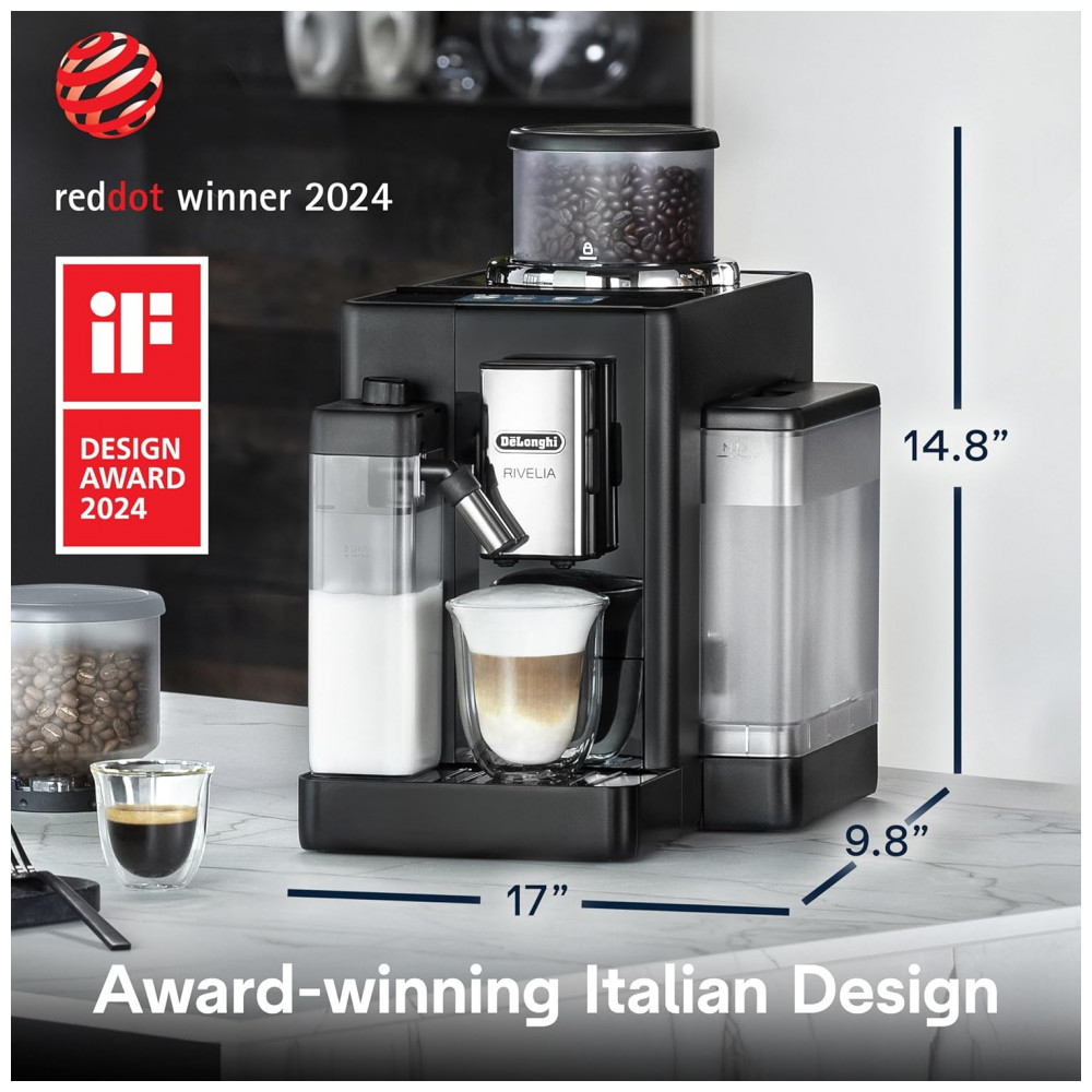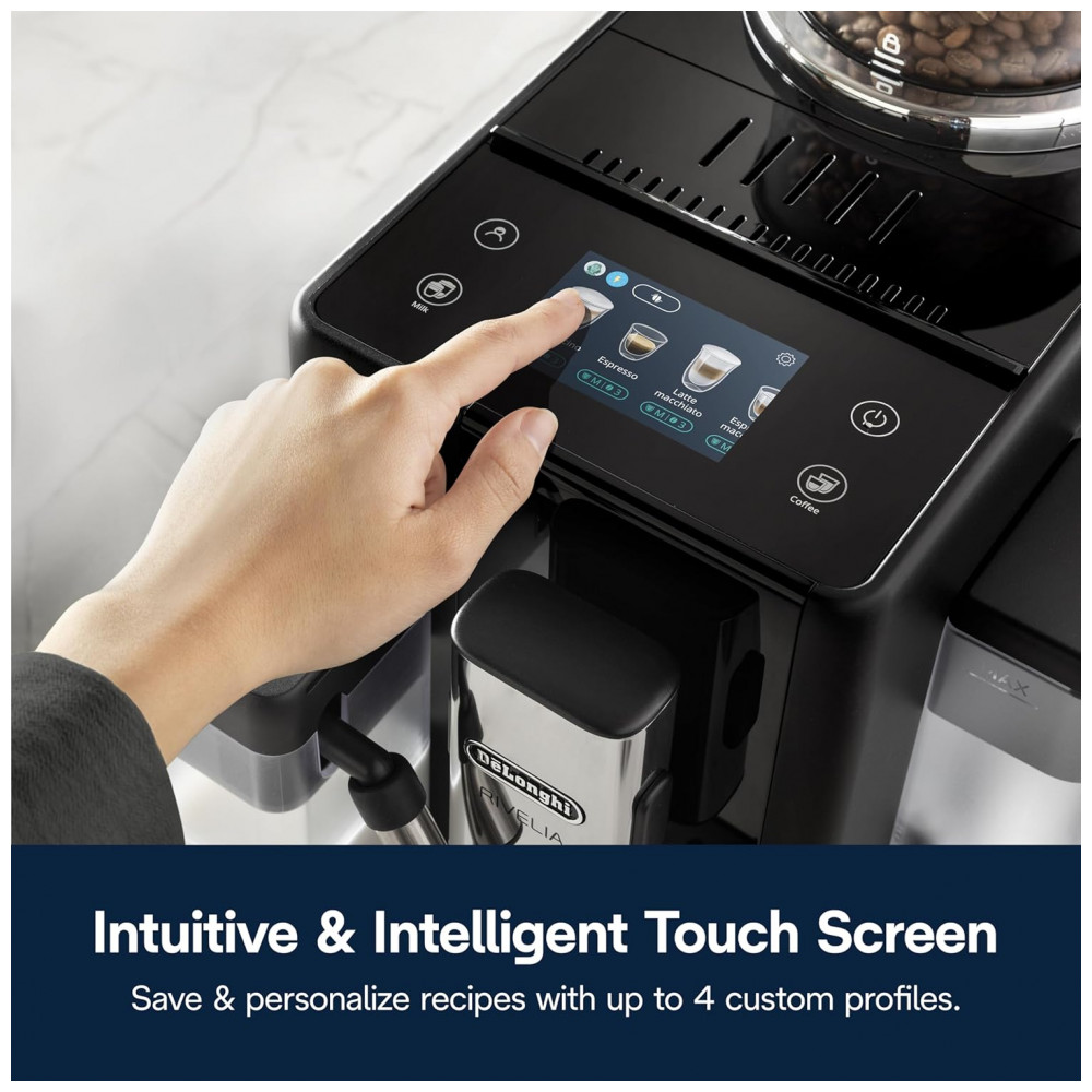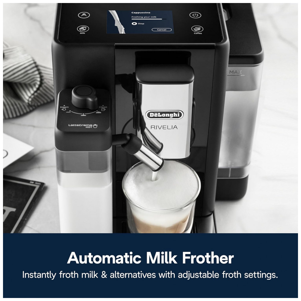 Máquina de Café Espresso Automática De’Longhi Rivelia Preta Moedor Integrado Espumador Sistema Bean Switch 120V