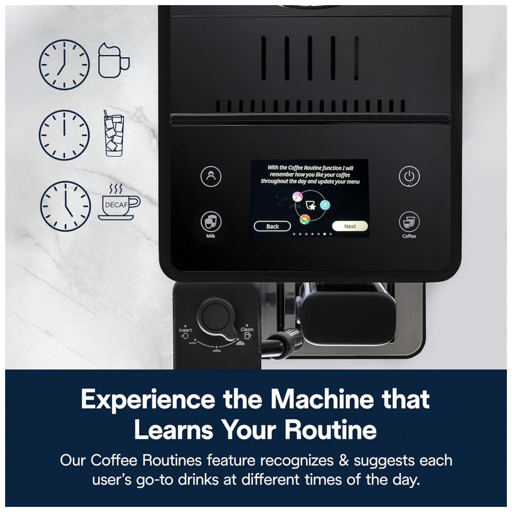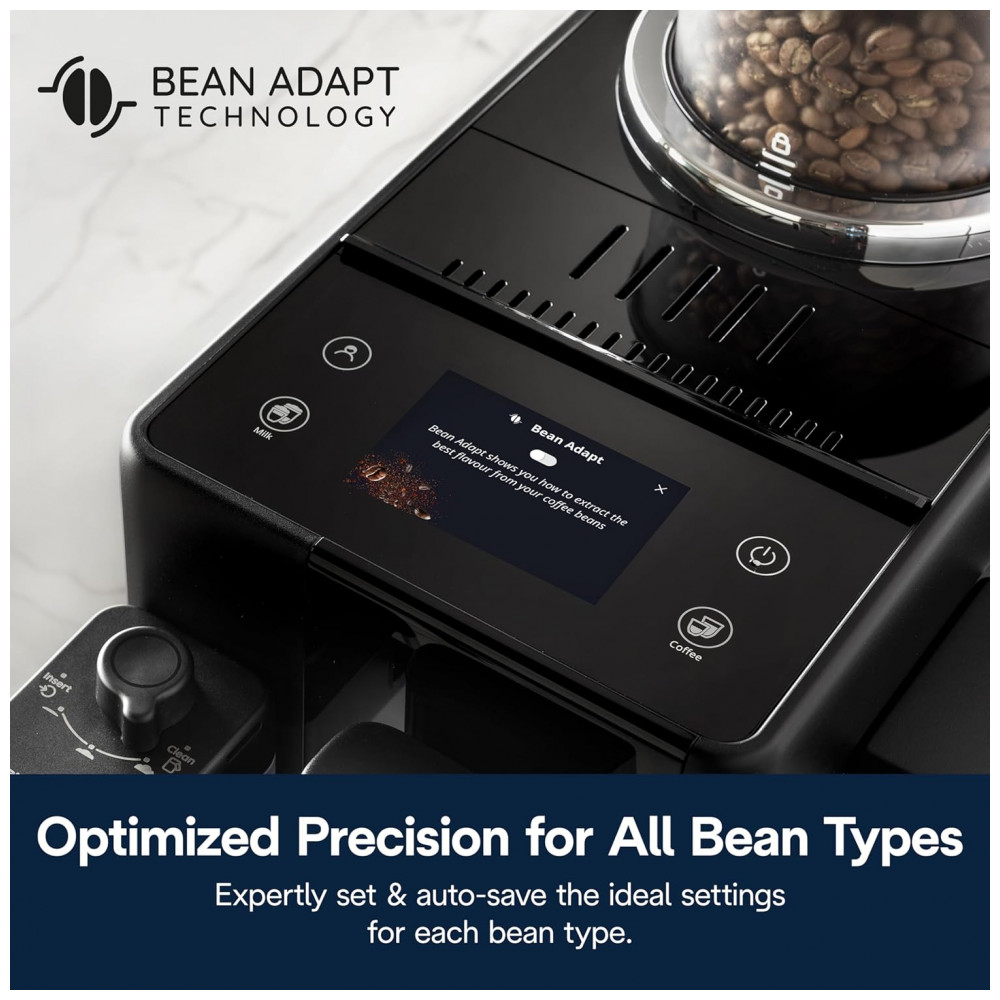 O sistema LatteCrema Hot proporciona espuma cremosa para leite quente e alternativas vegetais, com função automática de limpeza após o uso. A máquina oferece 18 receitas pré-programadas, incluindo espresso, cappuccino, latte, café gelado e mais. É possível ajustar intensidade, volume e adicionar dose extra, permitindo alta personalização. A tela touchscreen colorida de 3,5 polegadas facilita o controle e a navegação. Equipado com bomba de 19 bar e reservatório de água removível de 1,4 litro.
