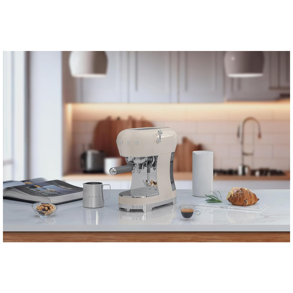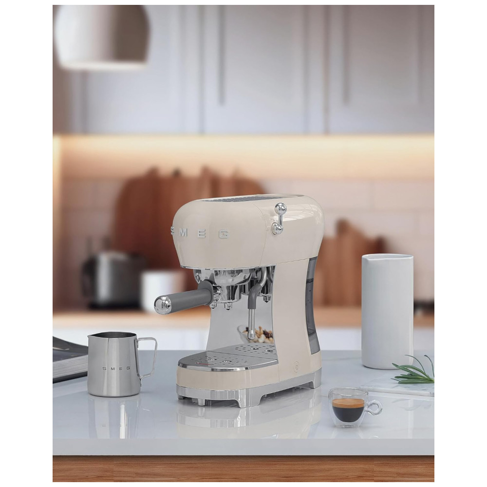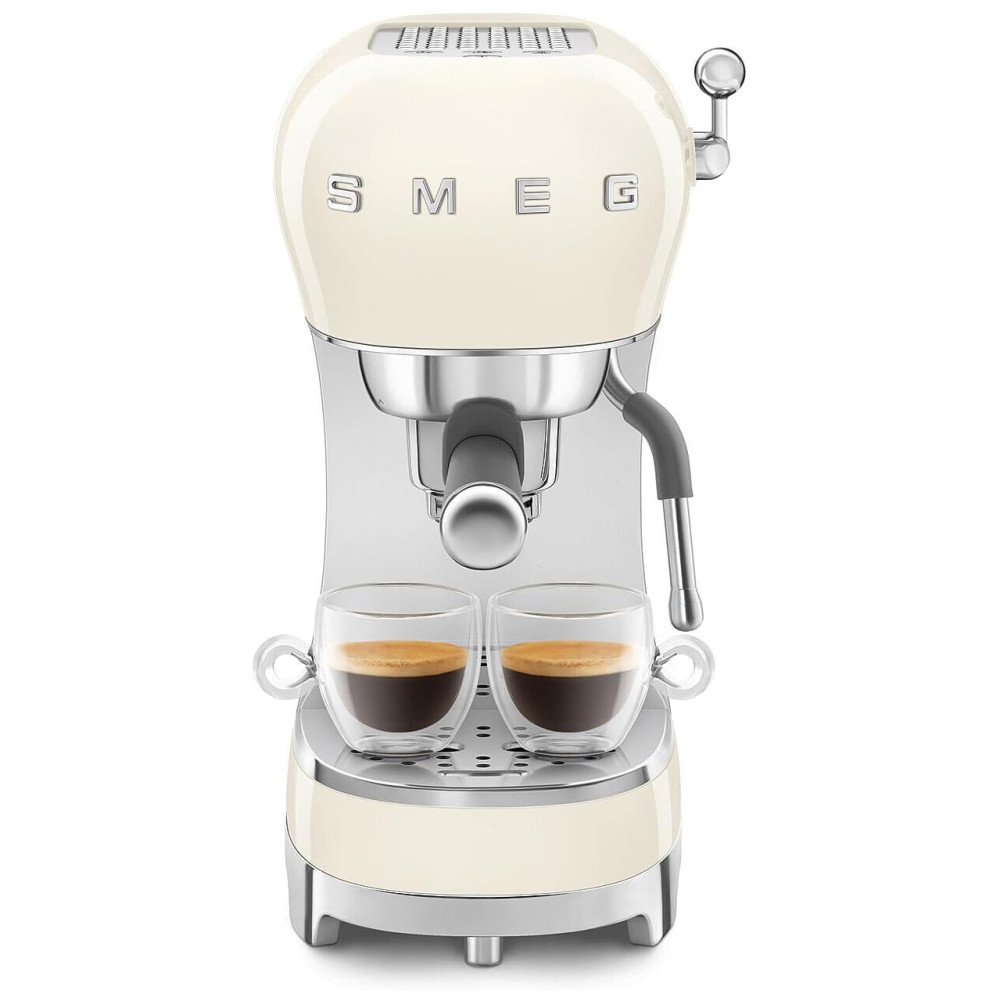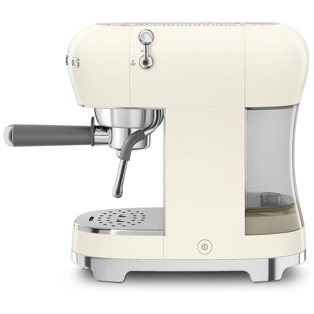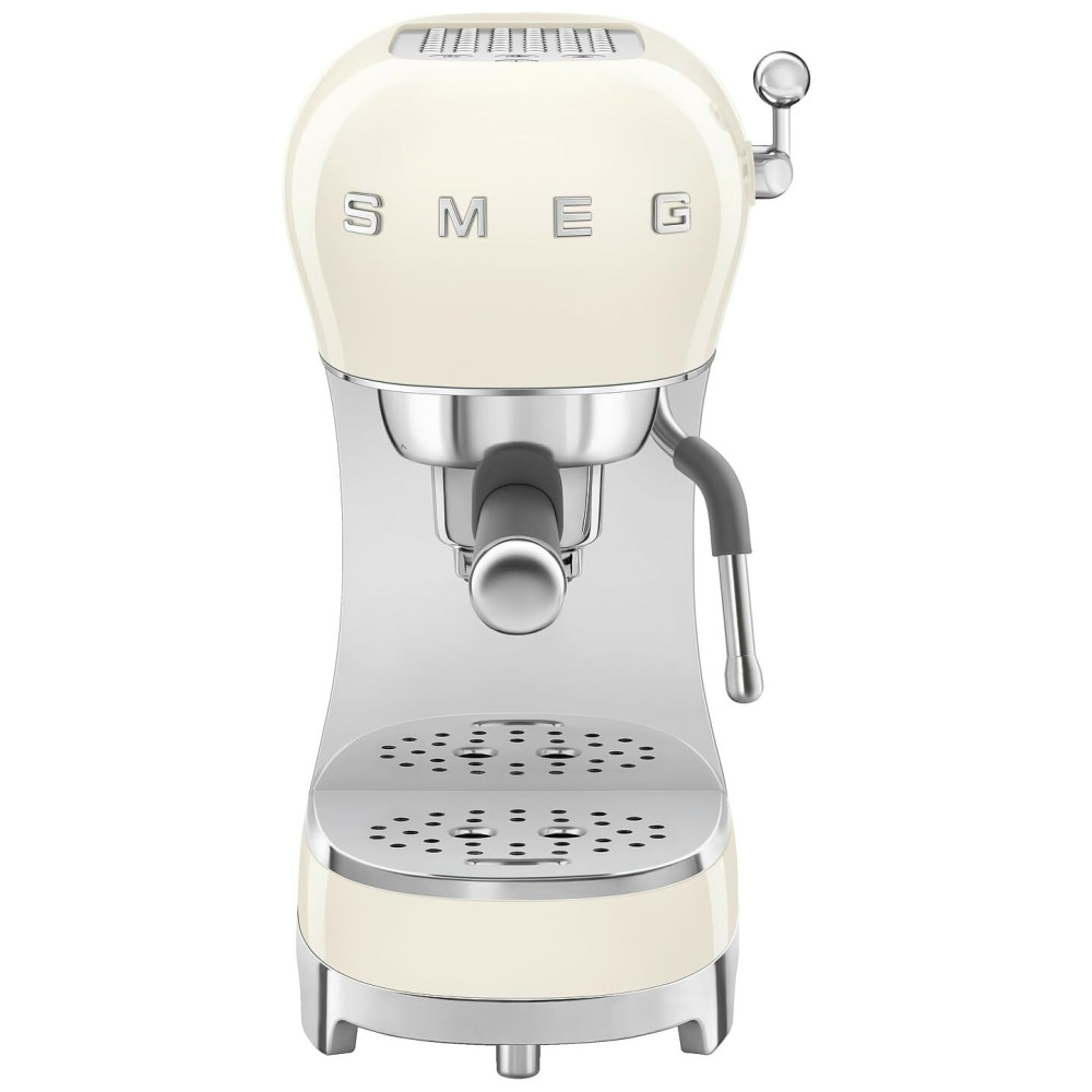 Máquina de Café Espresso Manual Smeg ECF02 15Bar Fabricada na Itália Design Retrô com Vara de Vapor na Cor Creme