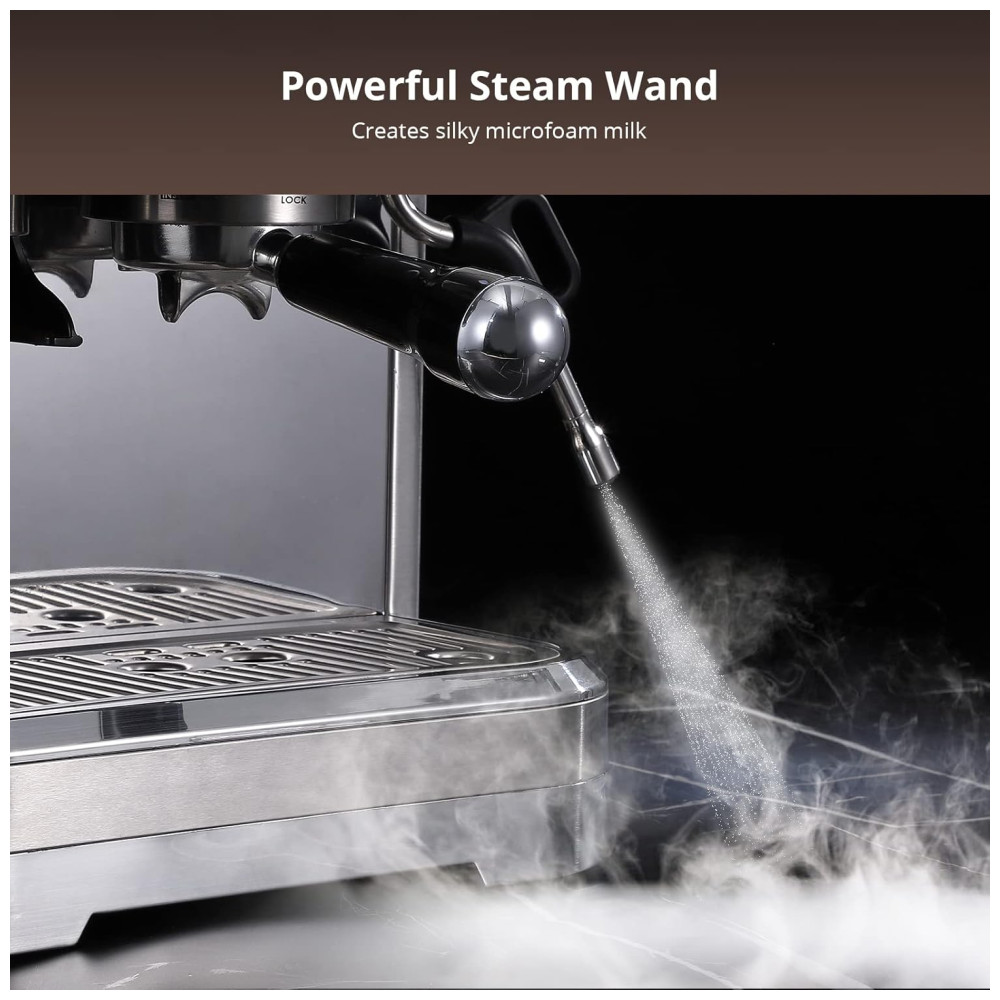 Equipado com uma bomba italiana ULKA de 15 bar e um controle de temperatura PID, a máquina garante pressão e temperatura da água consistentes, resultando em um perfil de sabor refinado e evitando notas amargas ou azedas. O inovador tubo de leite produz uma microespuma sedosa, com abundância de microbolhas, permitindo uma textura cremosa e doce que combina perfeitamente com os sabores ousados do café expresso.