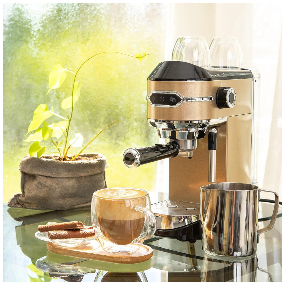 VAPOR INTEGRADA A máquina de café expresso, café vem com uma vara de vapor ajustável com pressão de vapor adequada para criar espuma rica e cremosa e latte art. Você pode desfrutar de um cappuccino quente, macchiato, café gelado e um latte com espuma cremosa e rica a qualquer momento em casa.