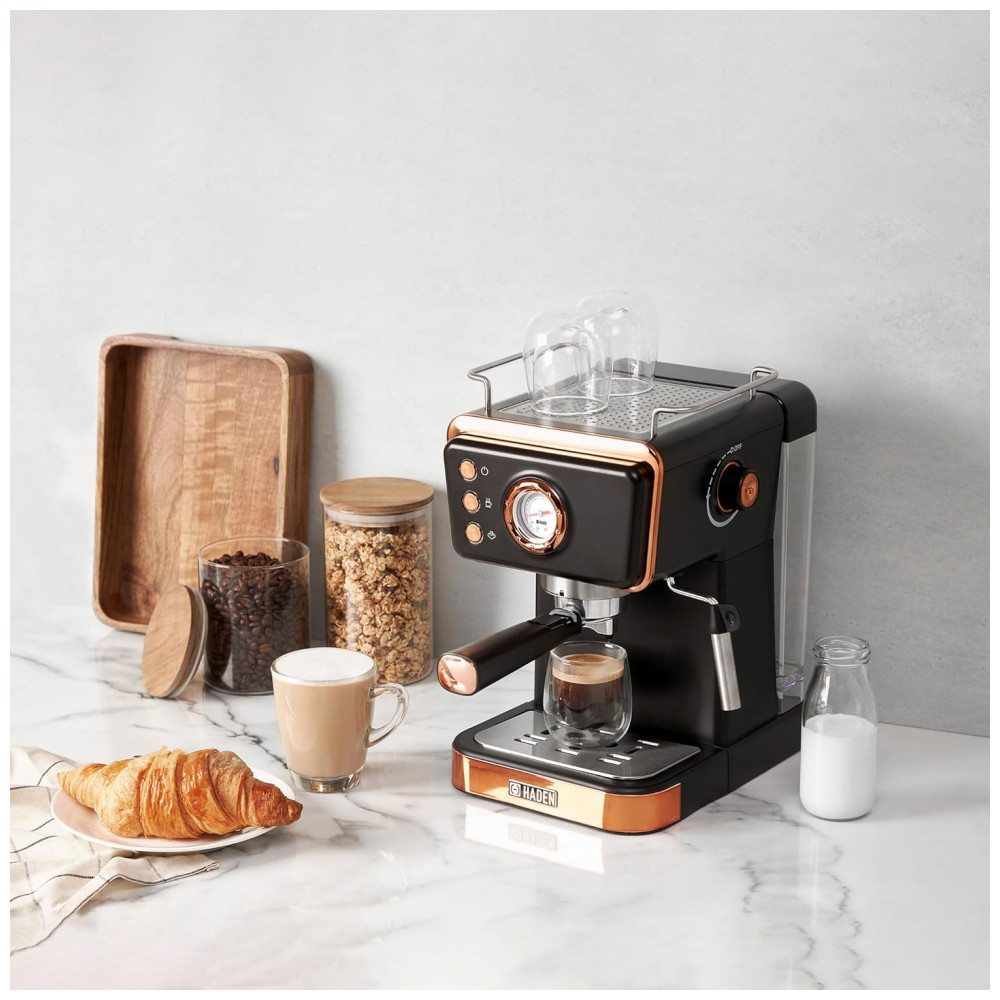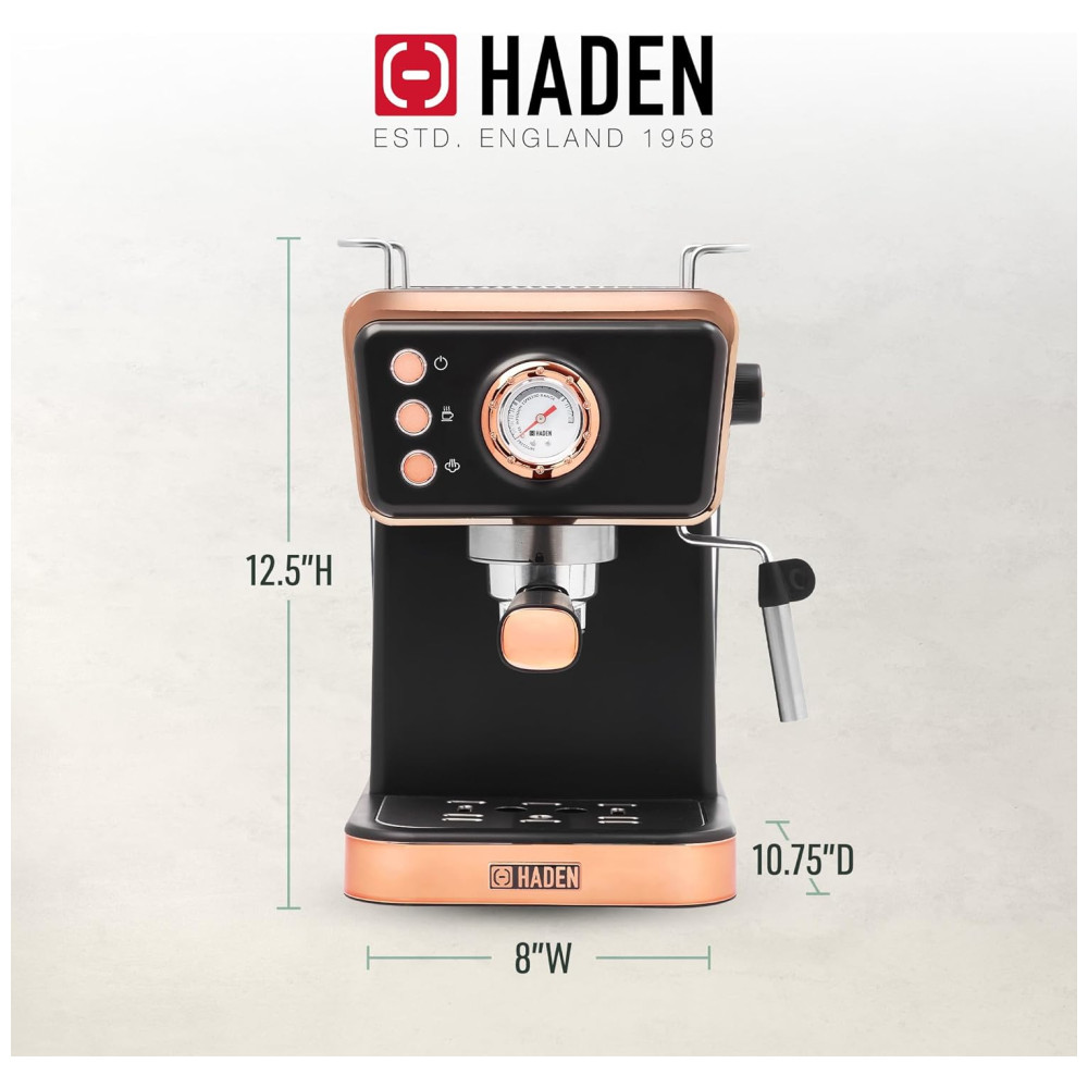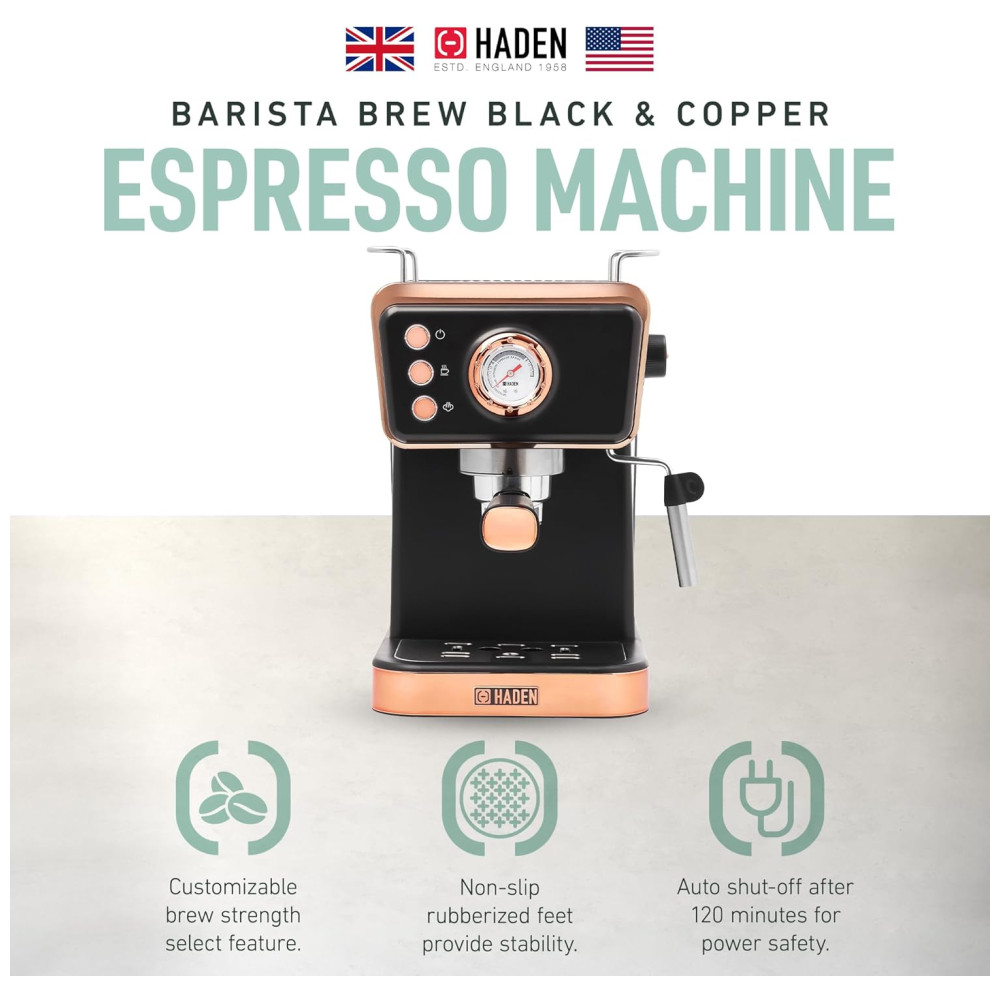 Máquina de Café Expresso 1.5L 20 Bar em Aço Inoxidável com Vaporizador de Leite 110V 1350W HADEN Preto e Cobre