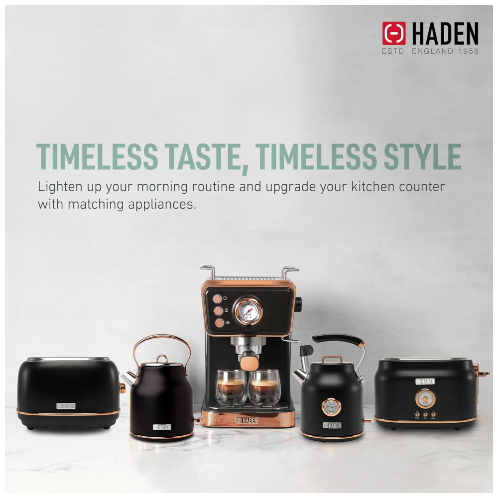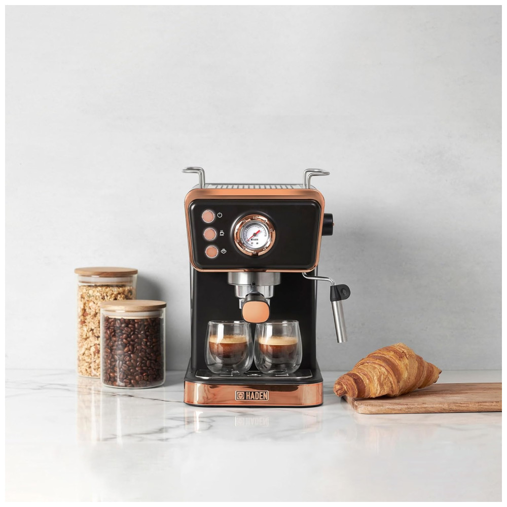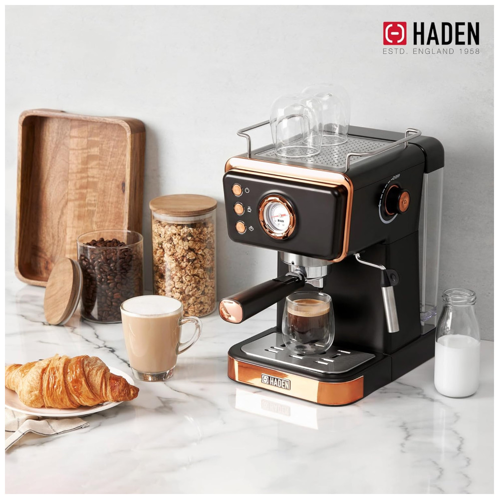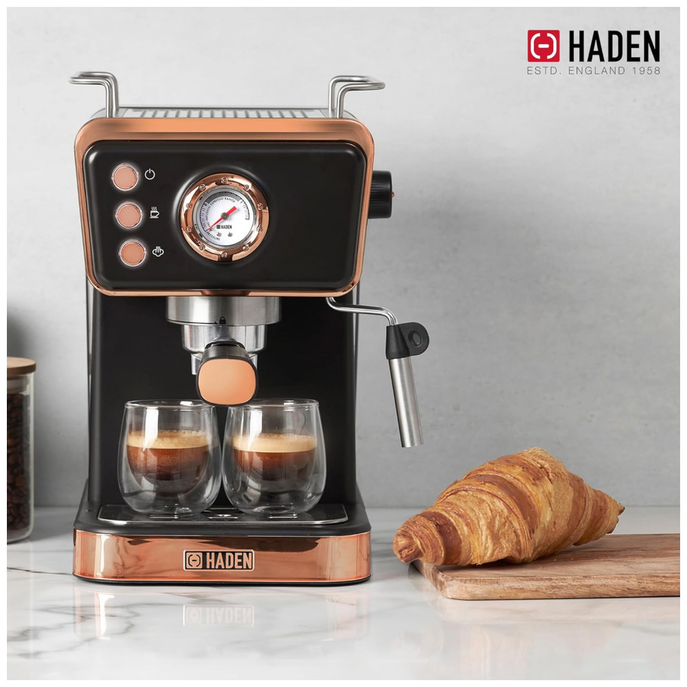 Máquina de Café Expresso 1.5L 20 Bar em Aço Inoxidável com Vaporizador de Leite 110V 1350W HADEN Preto e Cobre