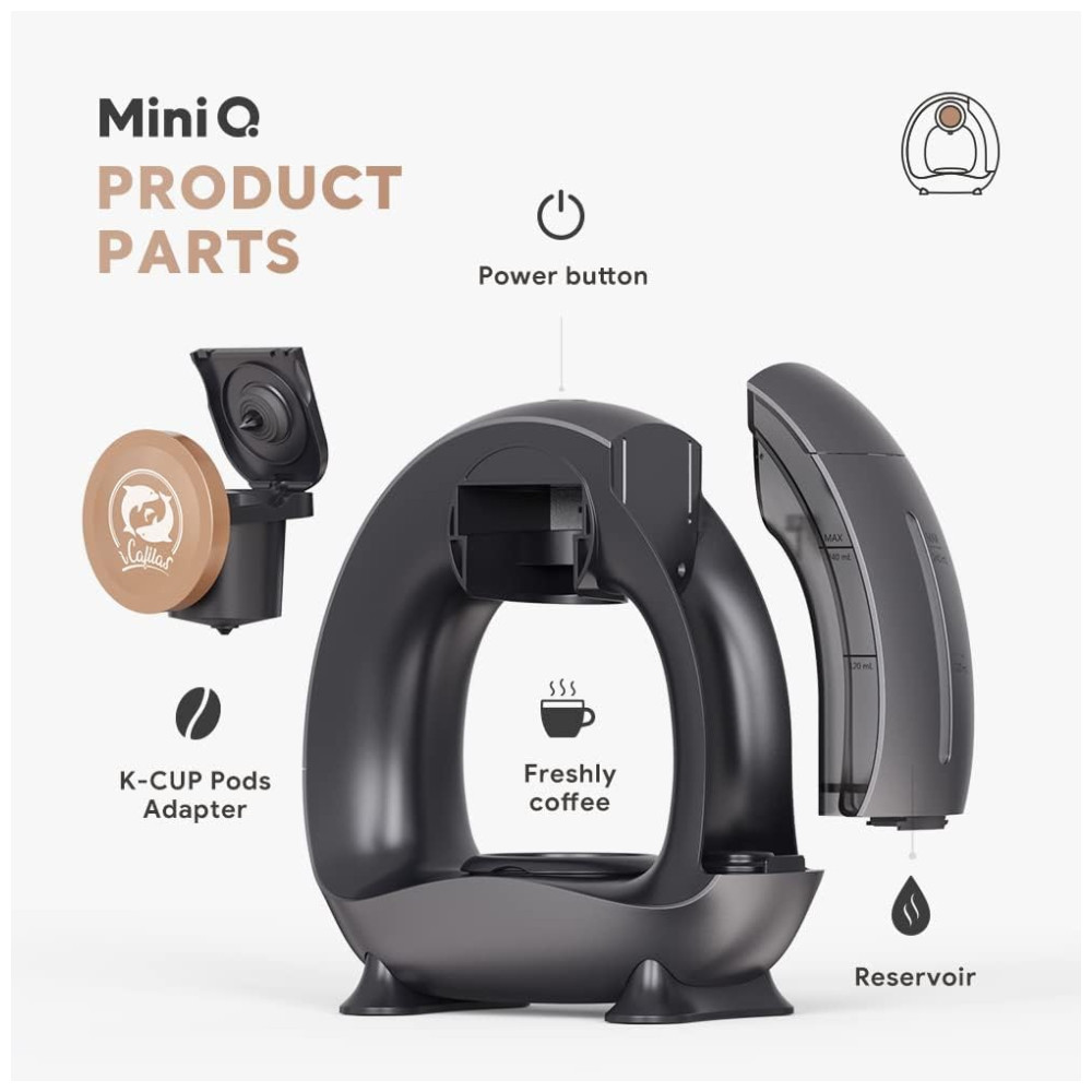 Cafeteira de xícara única de até 240 ML: Cafeteira pessoal MINI Q: Você pode usar café moído de diferentes sabores para criar seu café favorito diariamente. Prepare qualquer tamanho de xícara entre 120 240 ml com o café moído de sua preferência. Nunca mais se preocupe em desperdiçar seu café fresco.