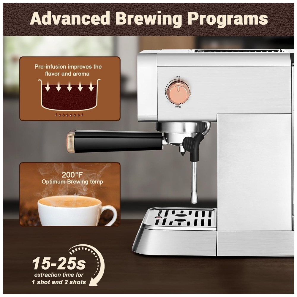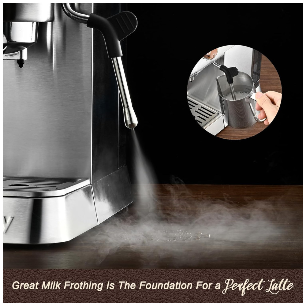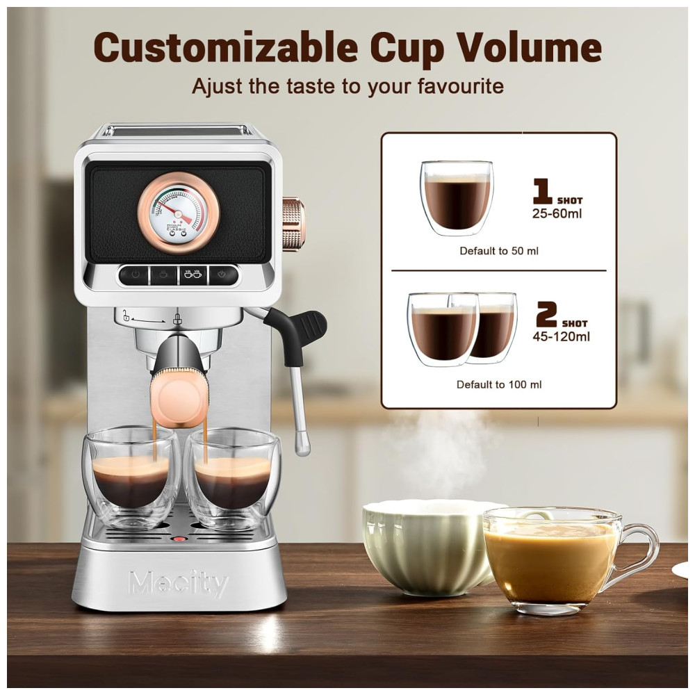 Máquina de Espresso 20 Bar Mecity CM5203AY Prata Inox Vaporizador de Leite Reservatório 109L Display 1400W 110V