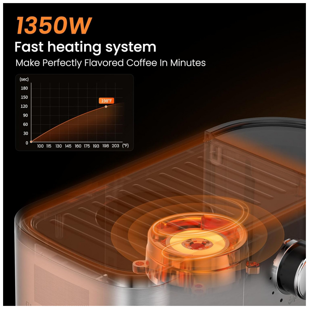 Equipado com um display LED de tempo e temperatura, esta cafeteira exibe claramente o status da infusão, permitindo que você acompanhe o processo de preparo. O vaporizador de leite cria microespuma de alta qualidade, ideal para uma arte de latte profissional, transformando sua cozinha em uma verdadeira barista experience.