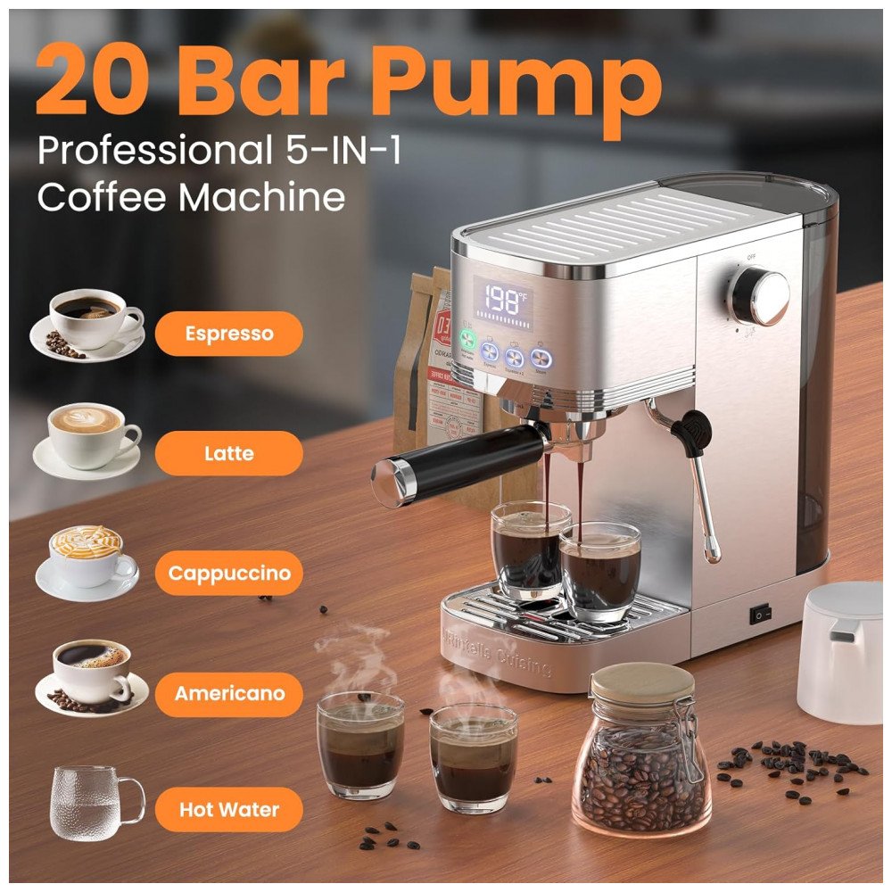 Máquina de Café Expresso URintells Cuising 4 em 1 com Vaporizador de Leite