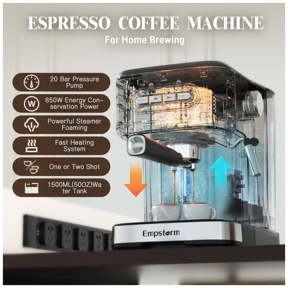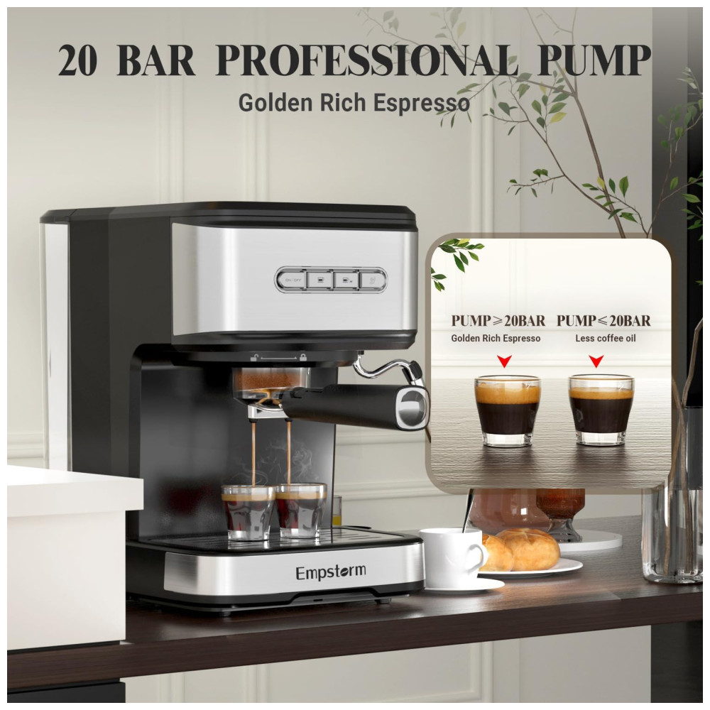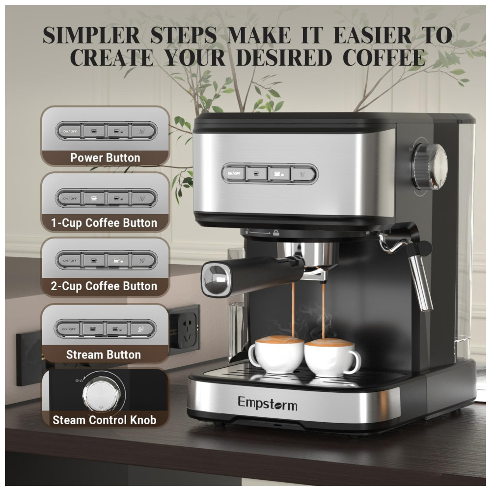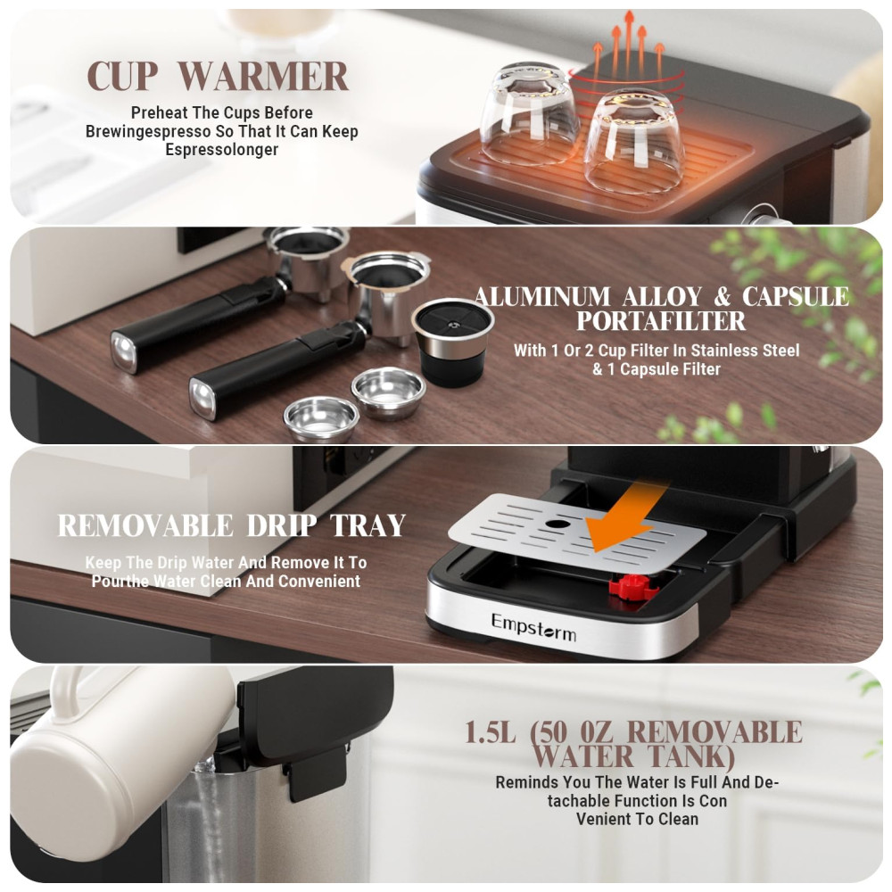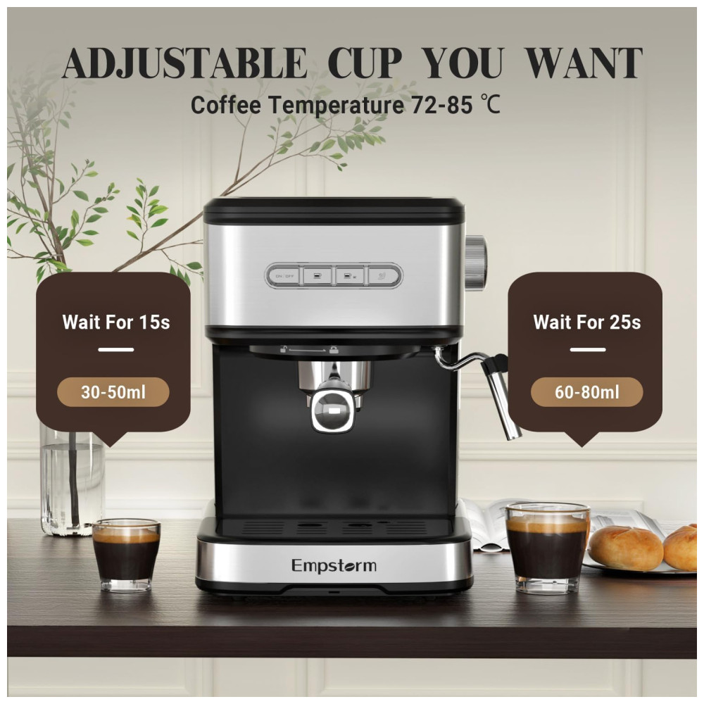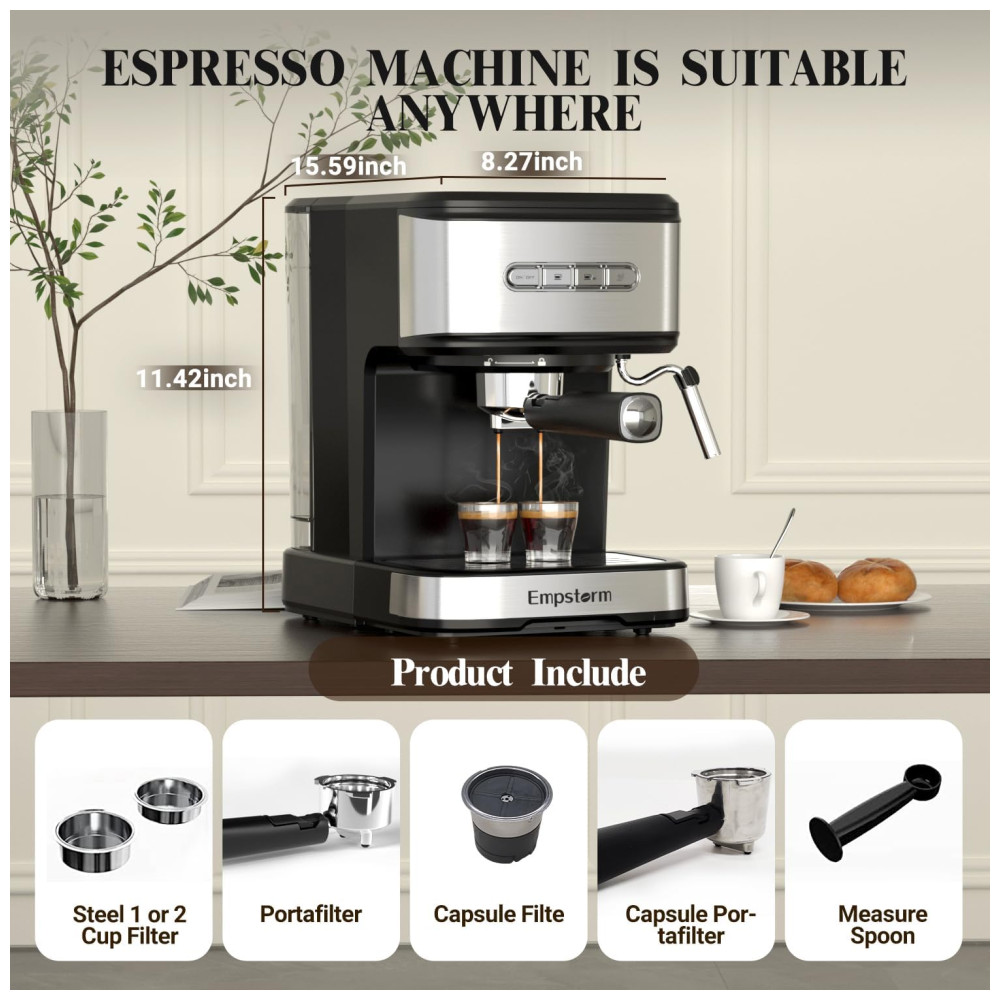 Máquina de Café Expresso 20 Bar para Cápsulas ou Café Moído com Vaporizador de Leite 110V 850W Empstorm Preta