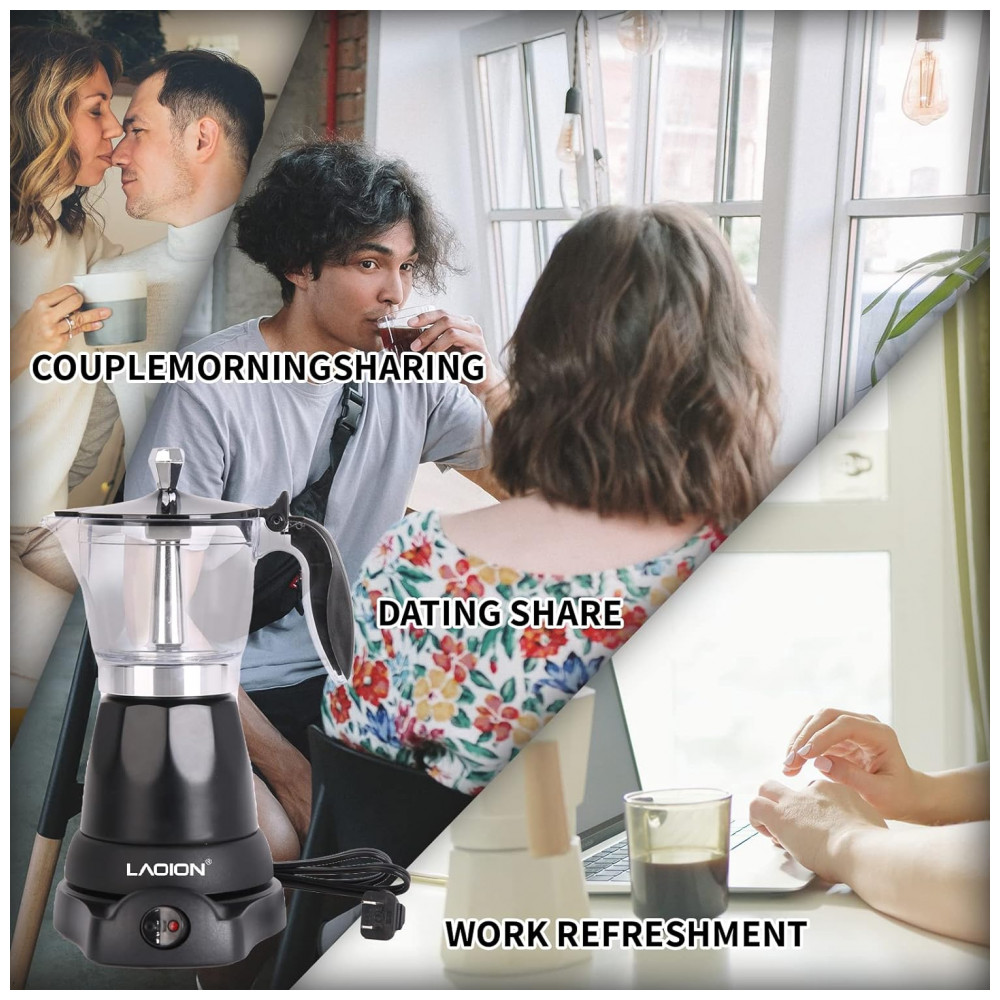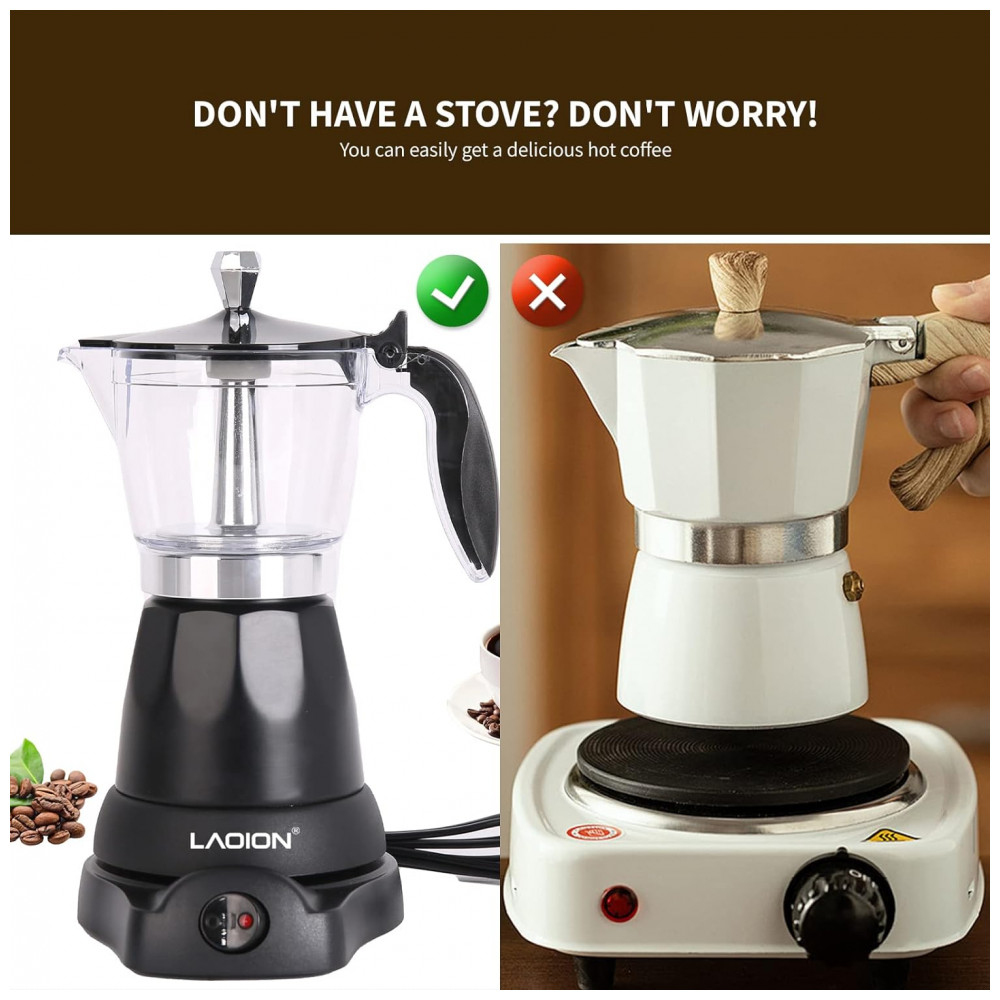 Recipiente transparente de luxo Pote italiano Moka LAOION com topo transparente cristalino. Você pode monitorar a situação do café expresso e saborear todo o processo de preparo, facilitando o melhor expresso tradicional.
