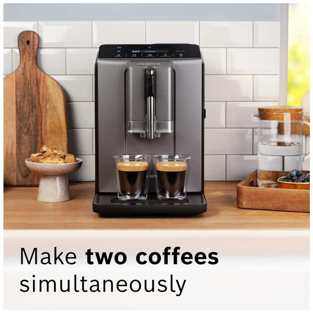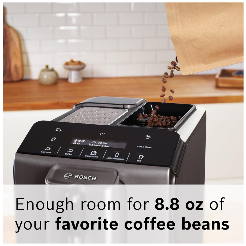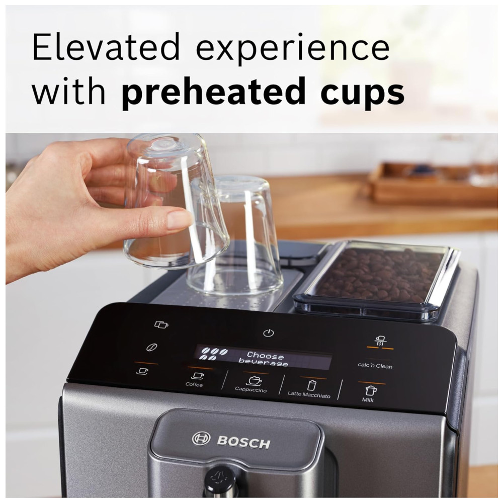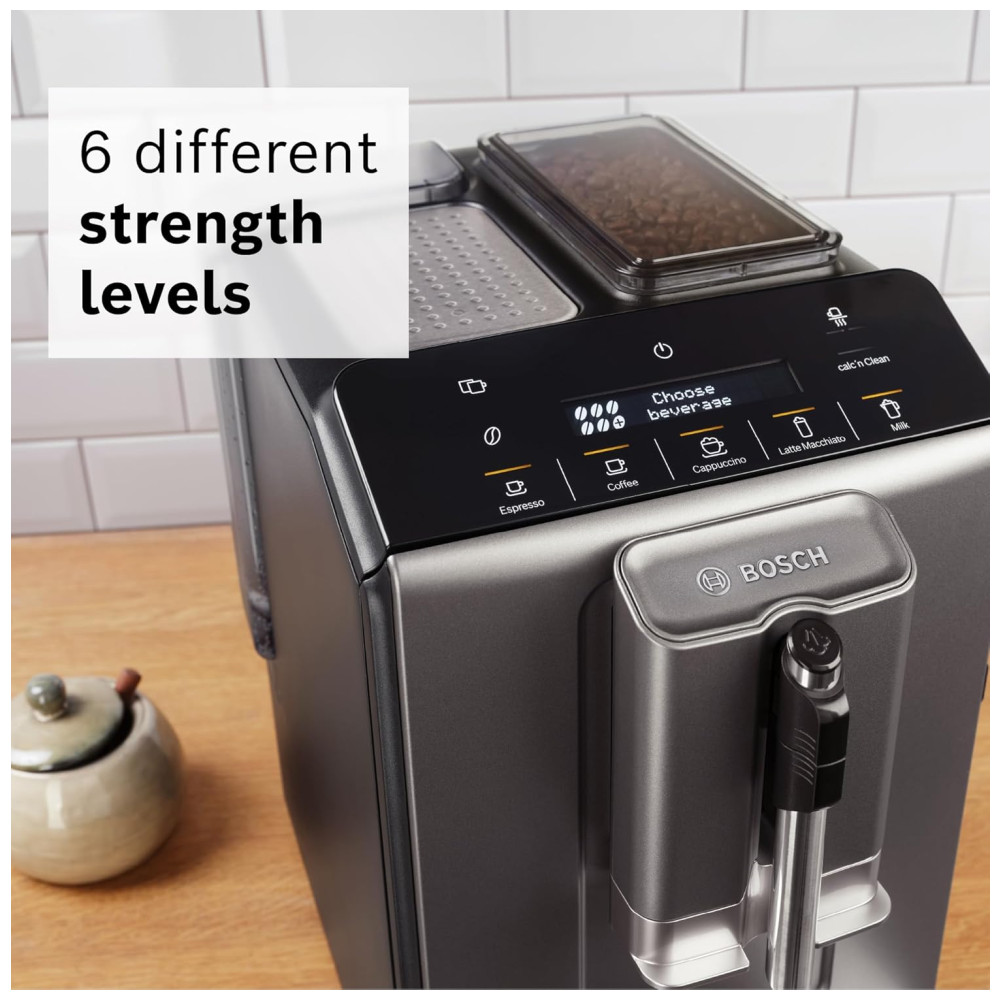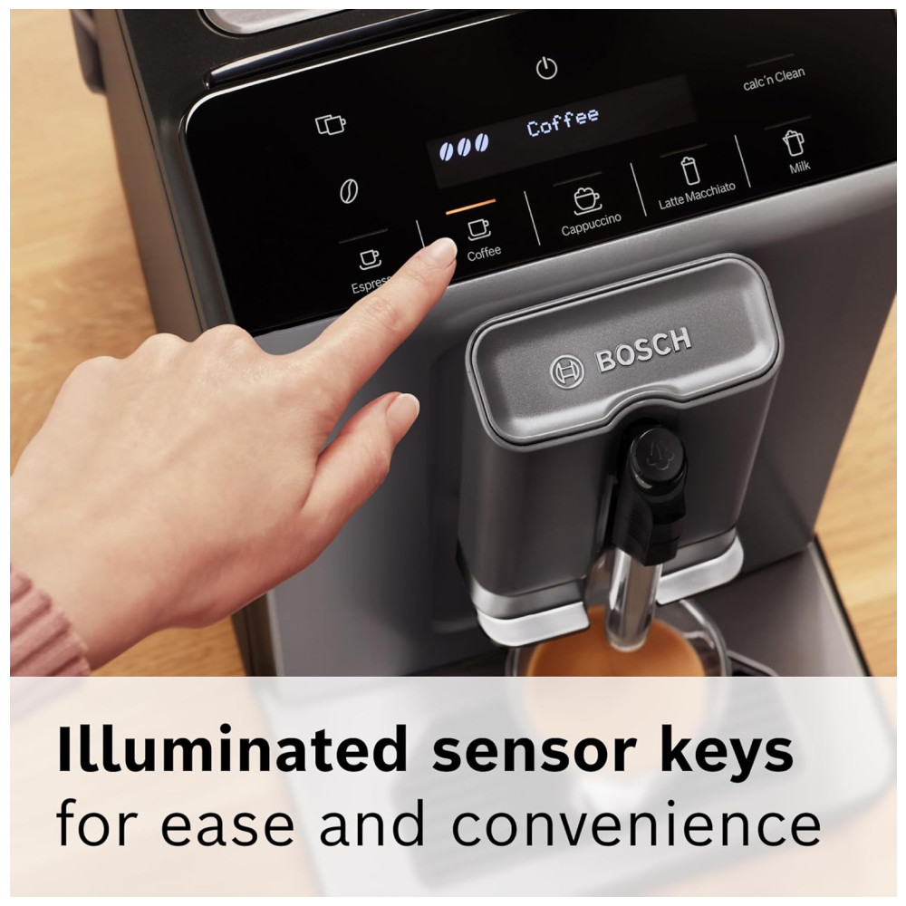 Máquina de Café Expresso Automática com Moedor de Cerâmica Painel de Controle LCD e Touch 110V Bosch TIU20508 série 300 Preta e Prata Escuro