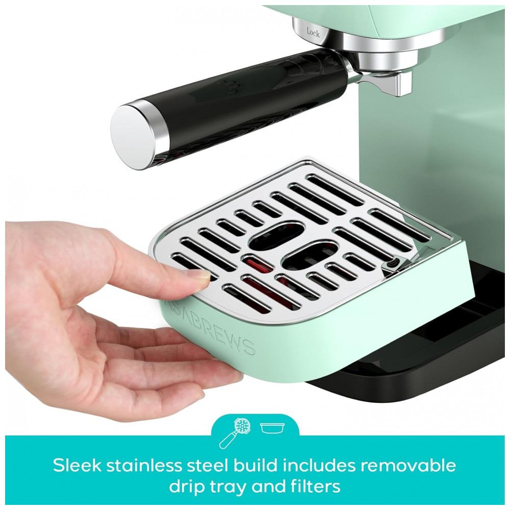 Máquina de Café Expresso CASABREWS 3700 Essential 20 Bar Compacta com Espumador a Vapor para Cappuccino Latte Reservatório de Água de 1244ml Verde