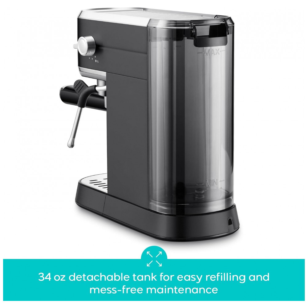 Componentes Inclusos: 1*Manual de Instruções, 1*Máquina de Café Expresso com Espumador de Leite, 1*Tanque de Água Removível de 34 oz, 1*Filtro de 51mm para Uma Xícara, 1*Filtro de 51mm para Duas Xícaras, 1*Portafiltro de 51mm, 1*Socador com Colher,