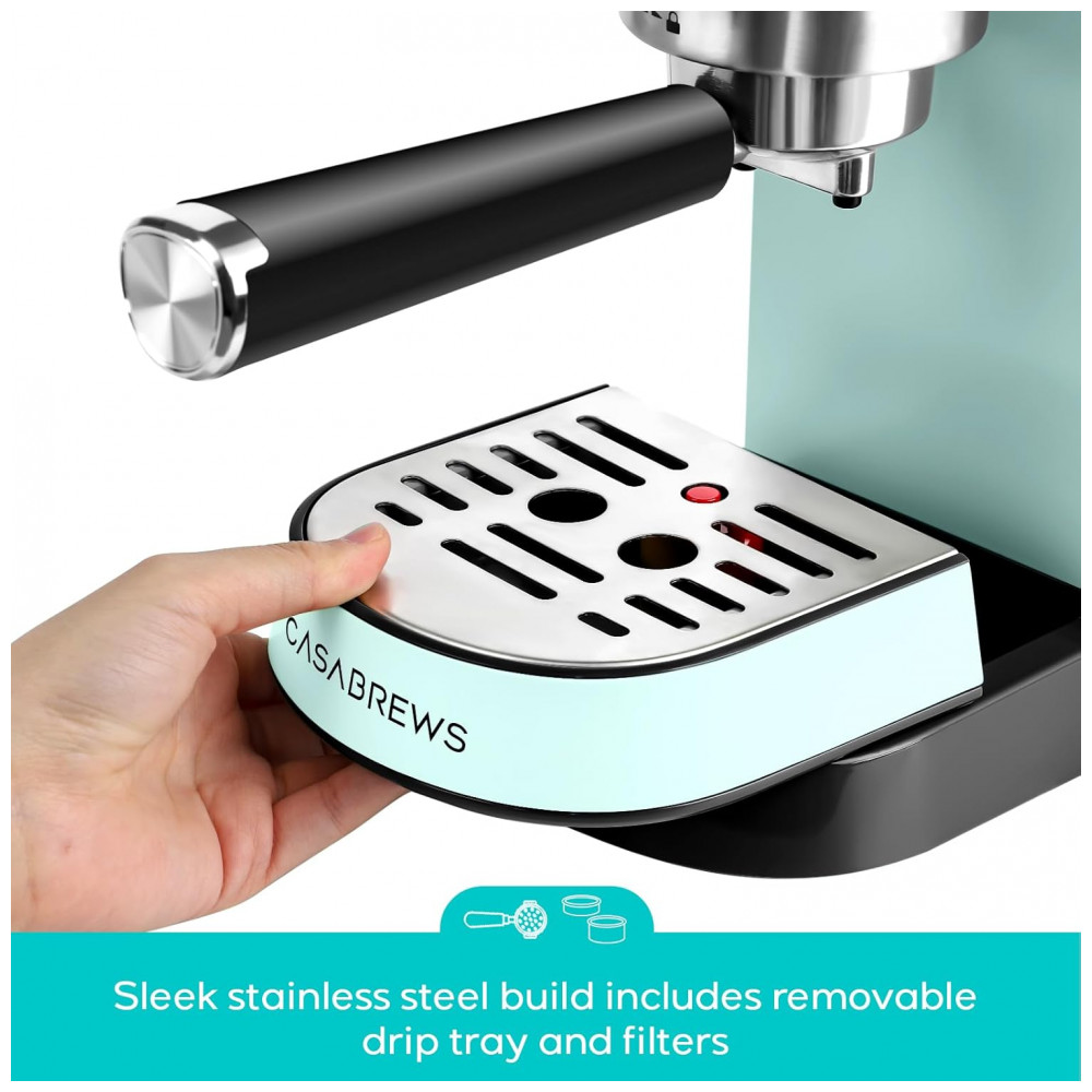 Máquina de Café Expresso CASABREWS CM5418 20 Bar Cappuccino com Vaporizador de Leite Aço Inoxidável 1350W Verde Pastel 34 litros