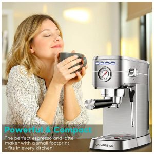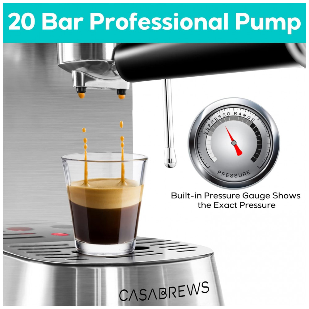 Faça seu café expresso favorito em casa A máquina de café CASABREWS com batedor de leite permite que você prepare todos os seus cafés expressos favoritos. Você pode desfrutar de um café com leite, cappuccino ou macchiato feito por um barista em casa. Aparência de aço inoxidável, elegante e durável, ideal para qualquer tamanho de cozinha. Esta cafeteira expresso compacta não é apenas perfeita para uso doméstico ou no escritório, mas também é um ótimo presente de casamento, presente de aniversário, presente de natal, presente para mãe, presente para pai e presente para esposa.