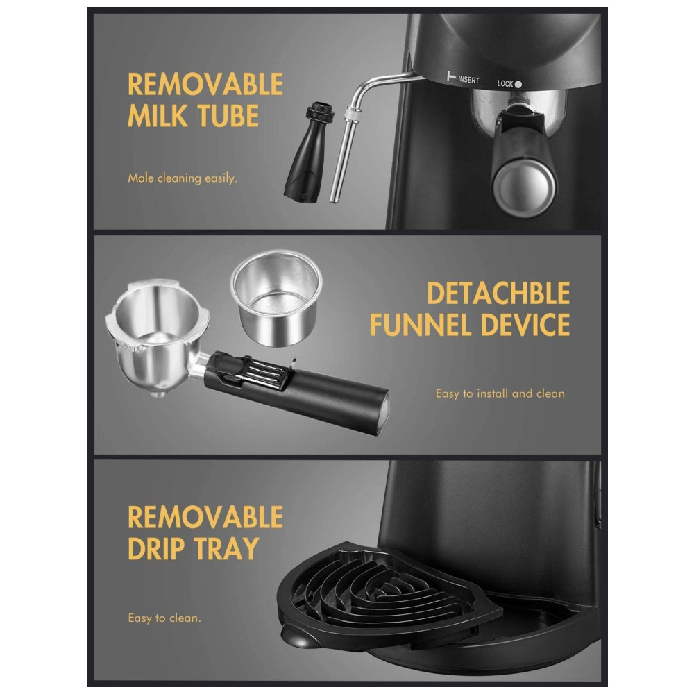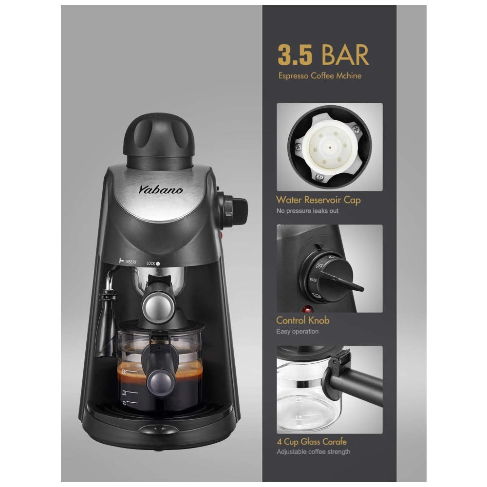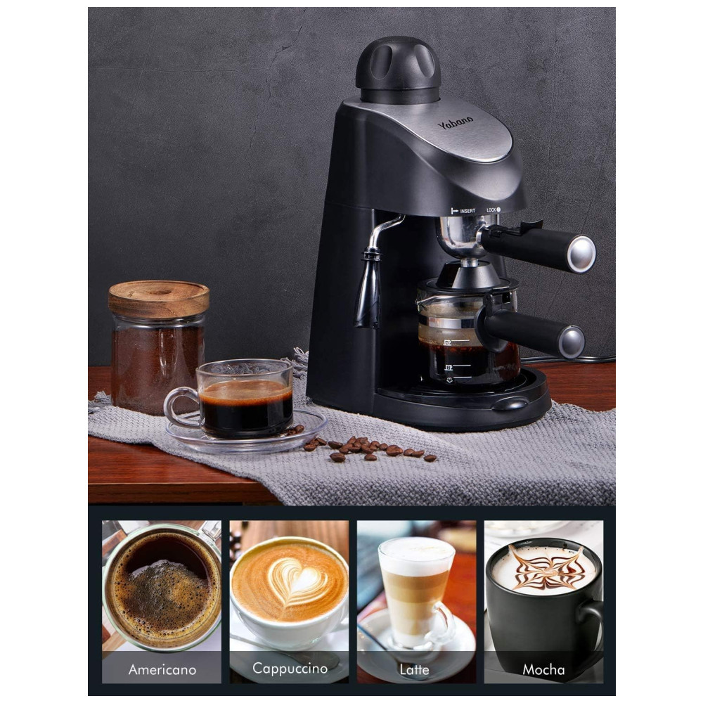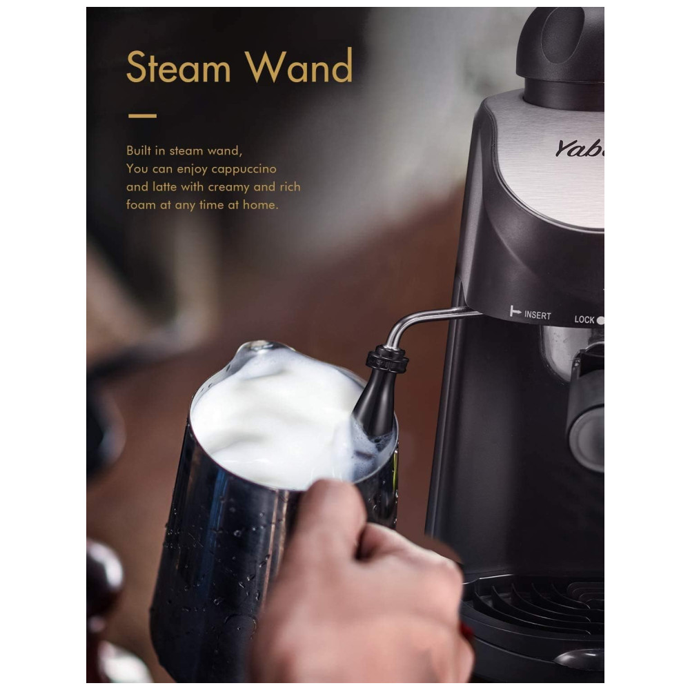 Vareta de Vapor A cafeteira expresso Yabano vem com uma varinha de vapor embutida. Você pode desfrutar de cappuccino e café com leite com espuma cremosa e rica a qualquer momento em casa. Você pode desfrutar de cappuccino e latte com espuma cremosa e rica a qualquer momento em casa.