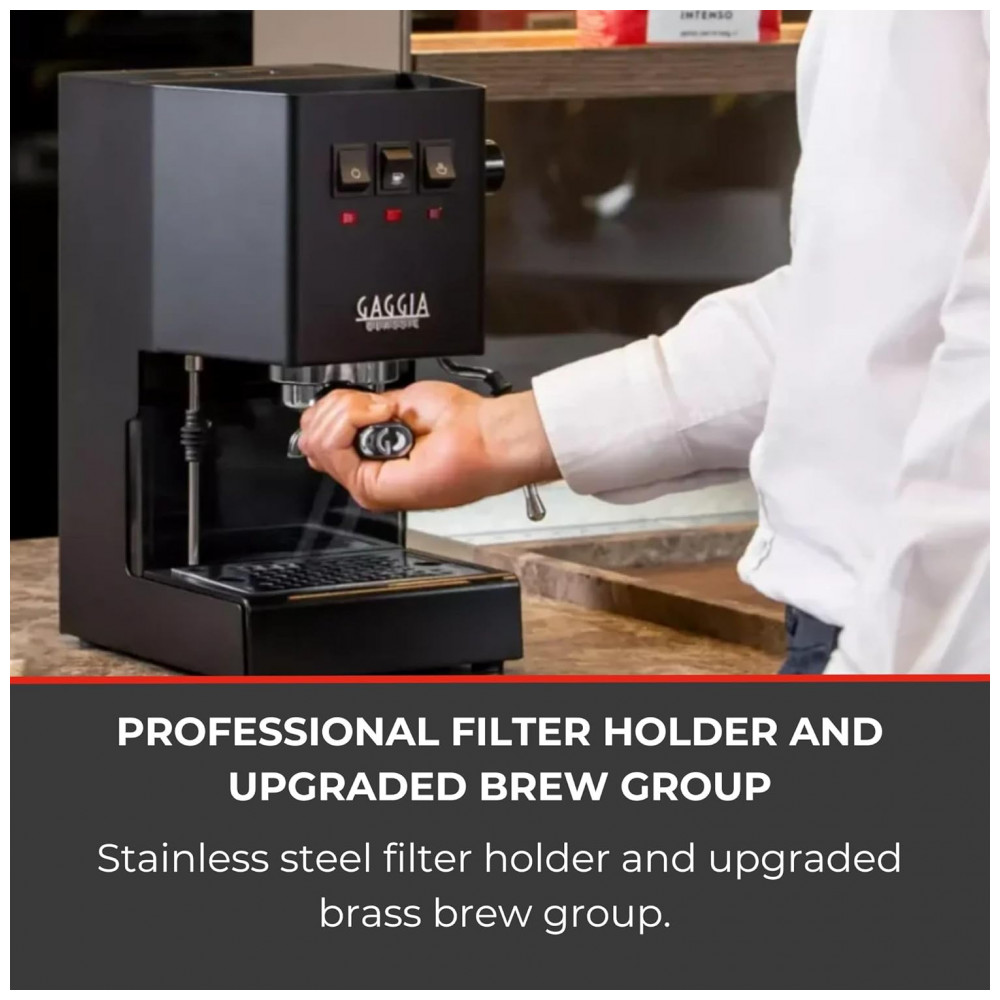 Esta máquina é uma escolha versátil para entusiastas de café que desejam uma experiência próxima da profissional, com características comerciais como caixa de aço sólido, válvula solenóide de três vias e varinha de vapor de alto desempenho. Com a Gaggia Classic Evo Pro, você não apenas prepara espresso de qualidade, mas também desfruta da arte de criar diversas bebidas à base de café, tudo isso em uma máquina robusta e confiável.