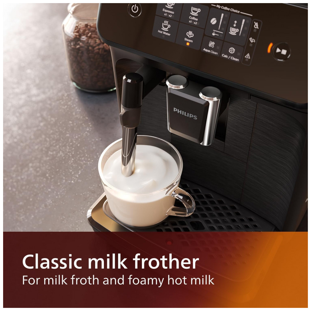 Desfrute do delicioso sabor e aroma do café de grãos frescos, na temperatura ideal, graças ao nosso sistema de preparo inteligente. O batedor de leite clássico permite que você crie um cappuccino suave e sedoso ou latte macchiato com facilidade.