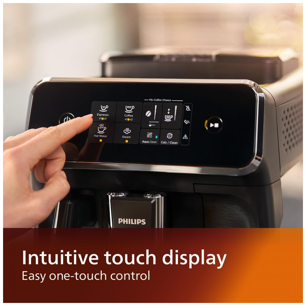 Intuitive touch display My Coffee Choice O sabor e o aroma irresistíveis do café de grãos frescos estão a apenas um toque de distância. Nosso display de toque intuitivo permite que você selecione facilmente seu café favorito