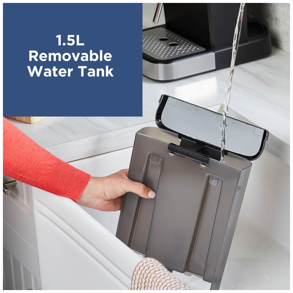 O tanque de água removível de 1,5 L facilita o enchimento e a limpeza, tornando a uma escolha prática para o uso diário. Seja você um barista experiente ou um entusiasta de café iniciante, a simplicidade e a eficiência desta máquina tornam a preparação de suas bebidas expresso favoritas uma brisa.