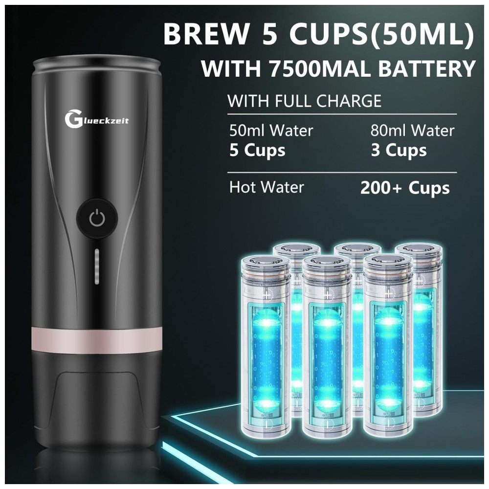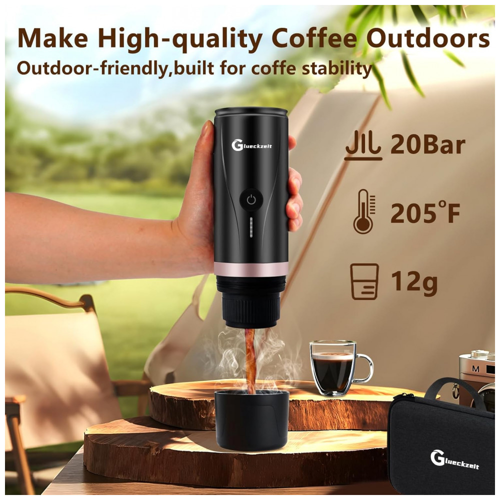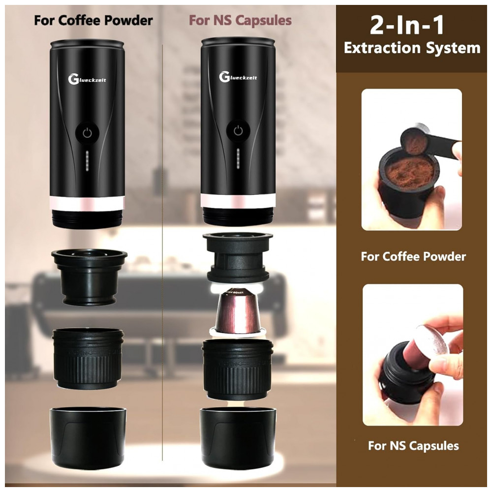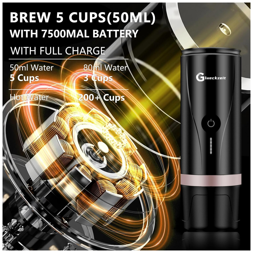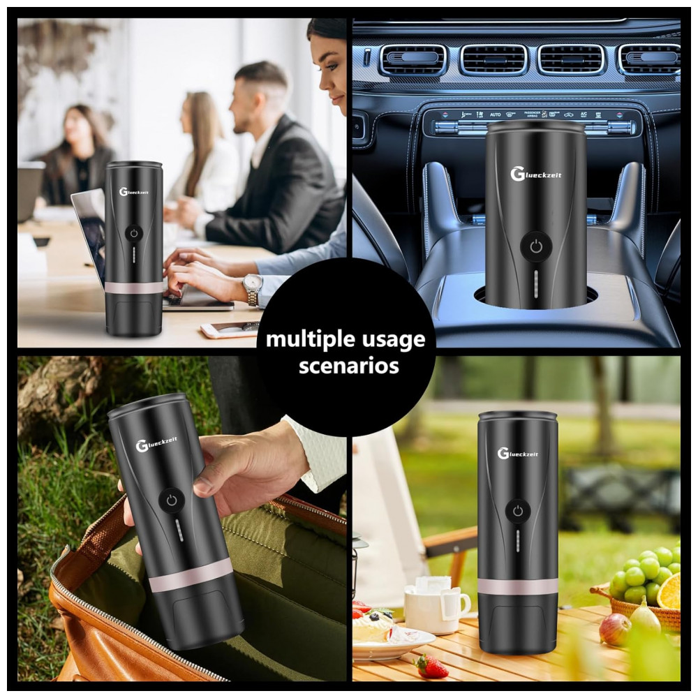 Máquina de Café Expresso Elétrica Portátil Recarregável com Autoaquecimento Glueckzeit Preto