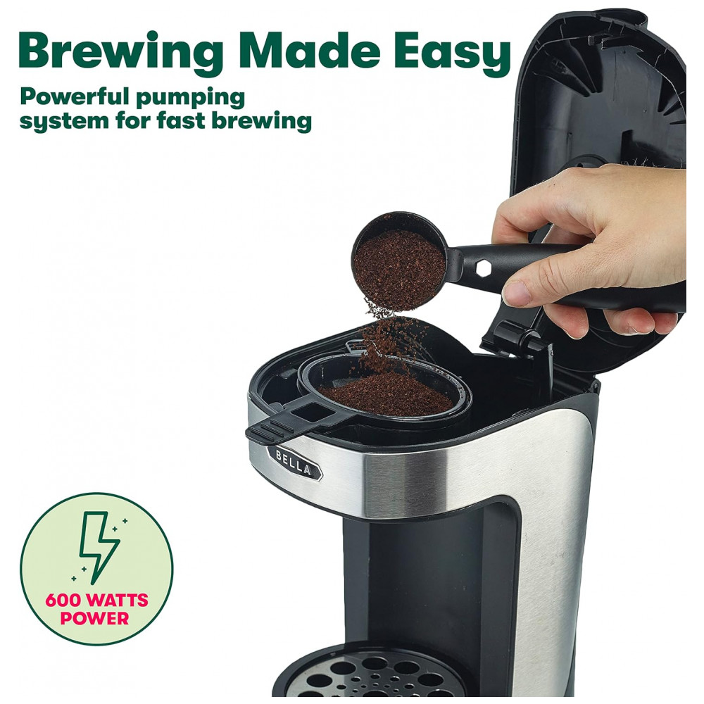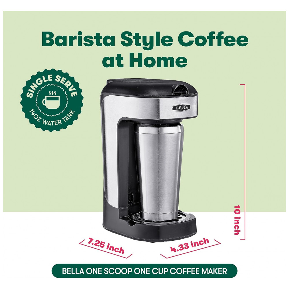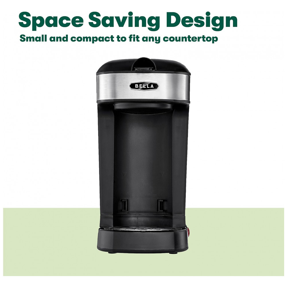 ECONOMIZADOR DE ESPAÇO Uma ótima opção para cozinhas, escritórios, estúdios e dormitórios menores, a cafeteira One Scoop One Cup tem um design compacto e simplificado que não sobrecarrega uma bancada. Você também pode usá lo para fazer água quente para chá, chocolate quente, aveia e muito mais