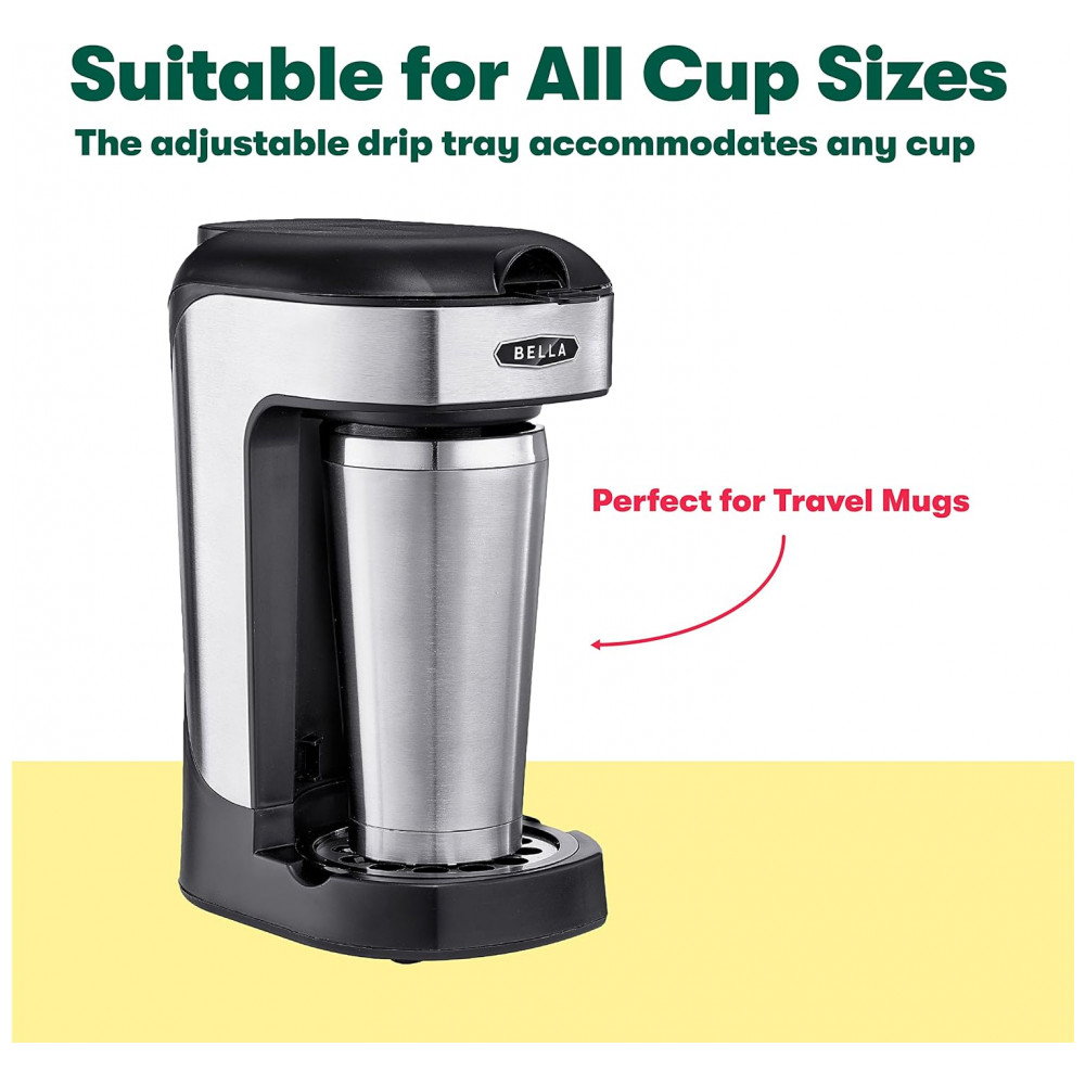 EFICIENTE E FÁCIL Esta cafeteira de xícara única possui um filtro permanente adequado para lava louças, para que você nunca mais precise de filtros de papel. O tanque de água de 14 onças e a bandeja de gotejamento ajustável permitem que você prepare uma deliciosa xícara em minutos com o mínimo de limpeza