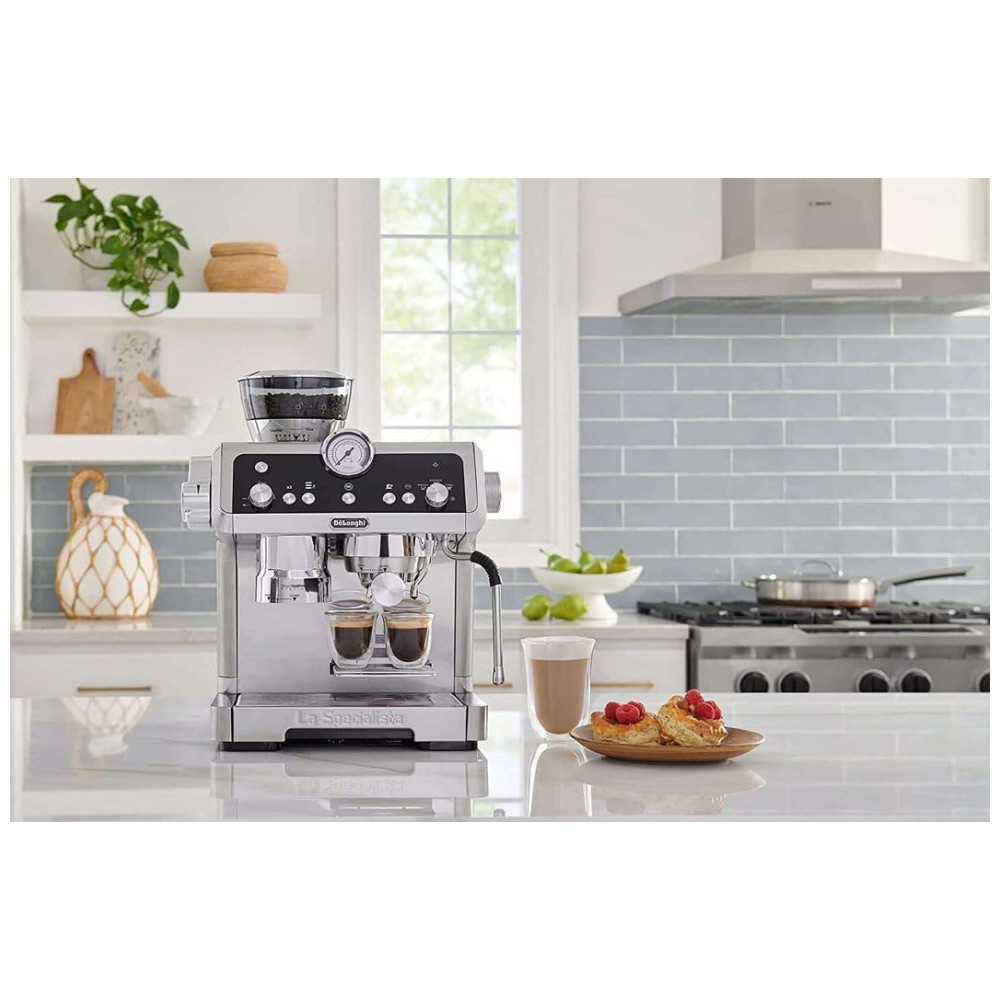 A máquina de café expresso Especialista Prestigio de DeLonghi é perfeita para os amantes de café que buscam precisão e qualidade. Com um design elegante e inspiração profissional, a máquina possui novos recursos e acessórios que oferecem mais controle sobre a extração do café.