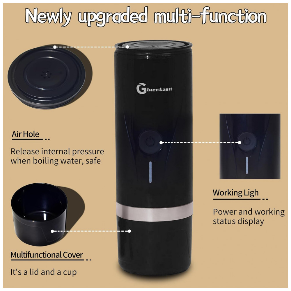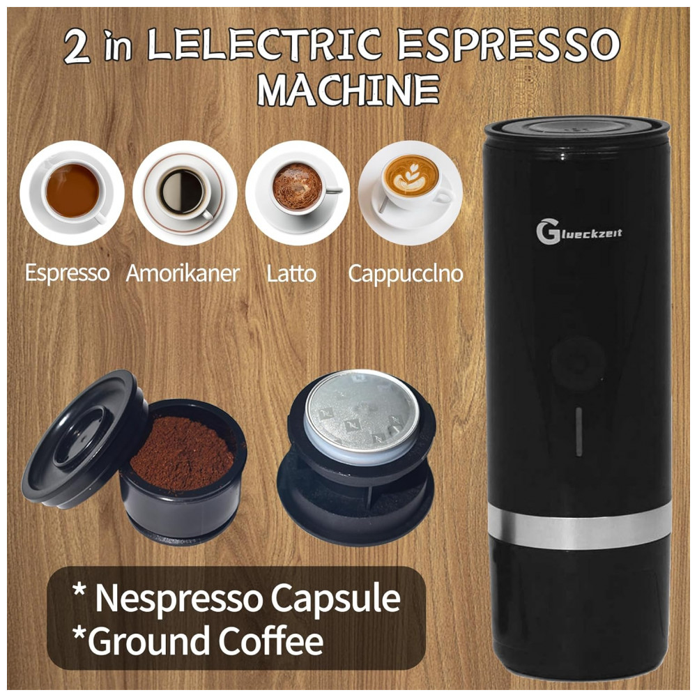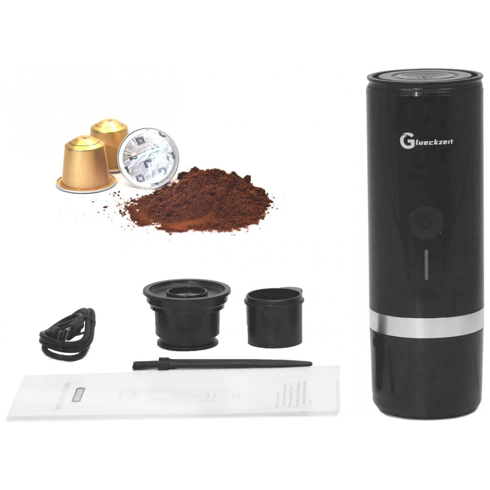 Máquina de Café Expresso Portátil USB para Cápsulas ou Café Moído Glueckzeit Preta