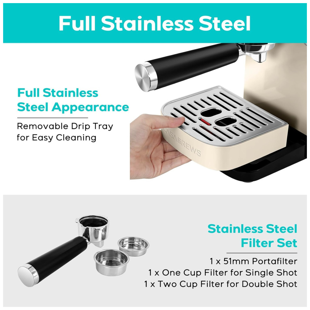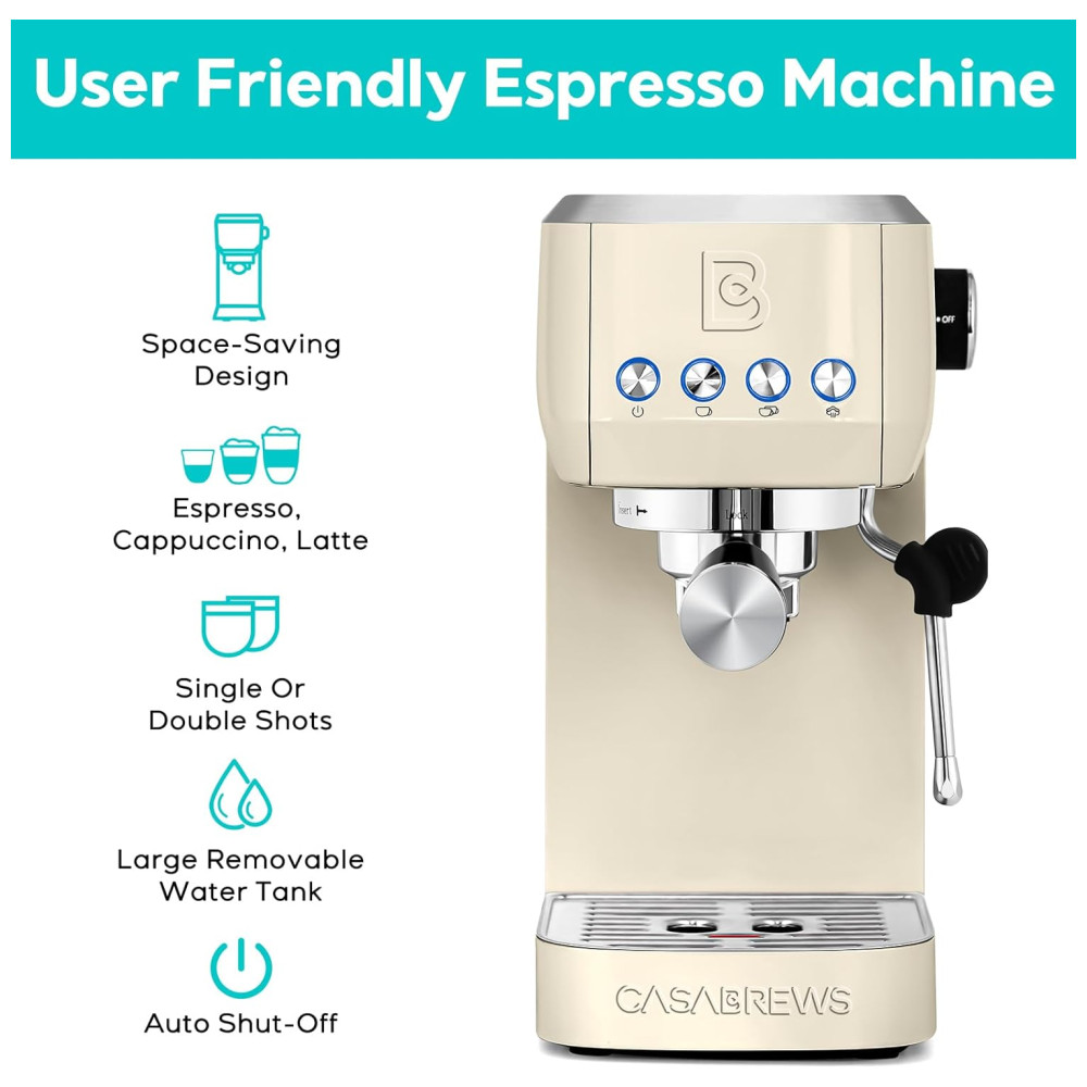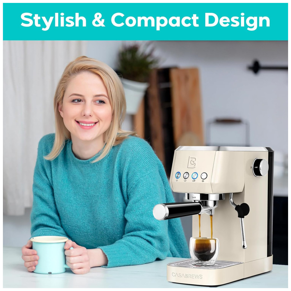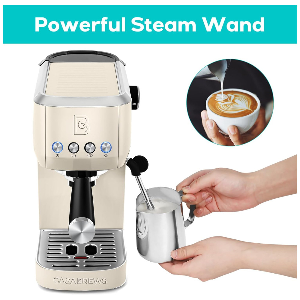 Máquina de Café Expresso Profissional 20 Bar com Vaporizador de Leite e Tanque de Água Removível de 14L 110V 1350W CASABREWS Creme