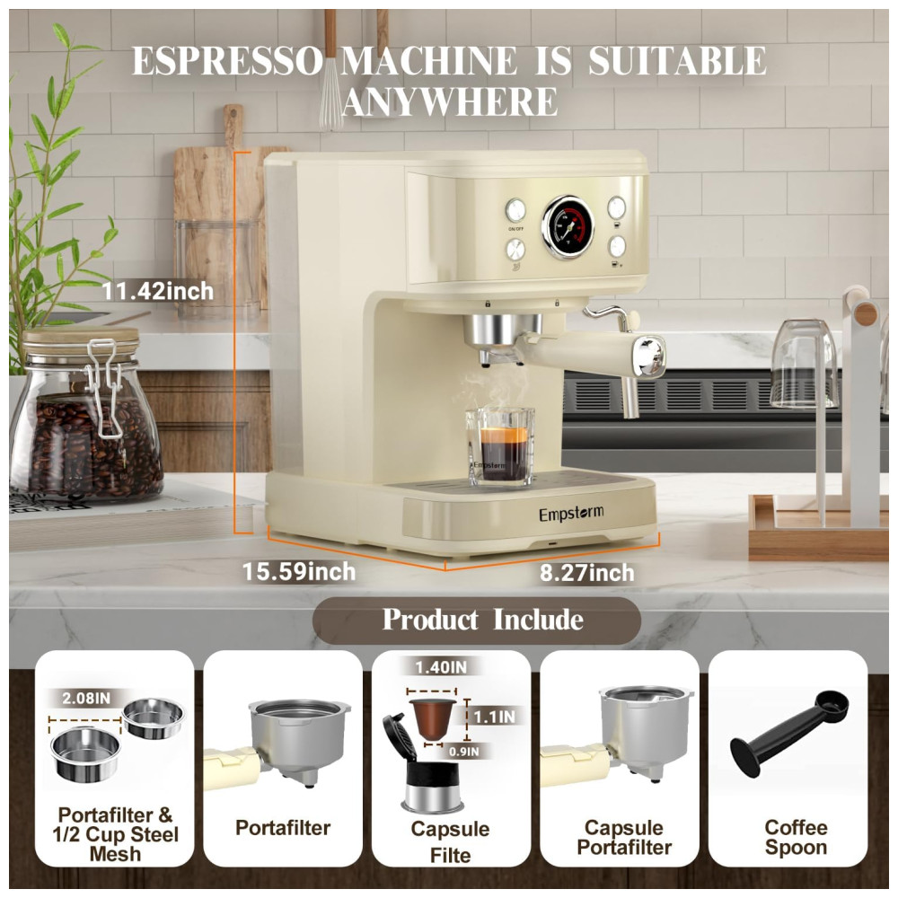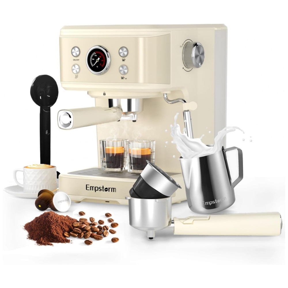 Máquina de Café Expresso Profissional 3 em 1 Compatível com Cápsula ESE ou NS com Vaporizador de Leite 110V 1100W Empstorm Creme