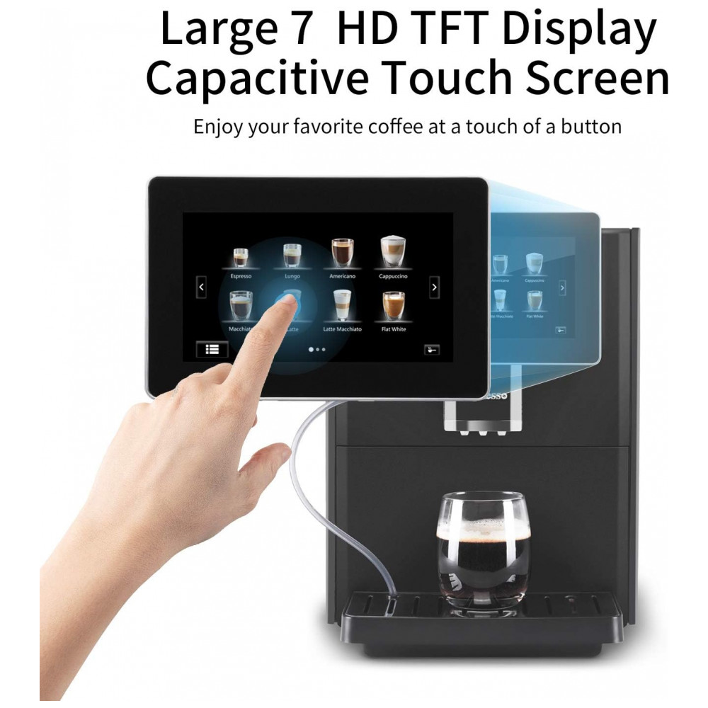 Reddot Winner 2020. Cafeteira Super Totalmente Automática com grande tela de toque intuitiva TFT HD de , mostra sua proeza de programação. Esta máquina de grão para xícara também possui uma gaveta para café moído