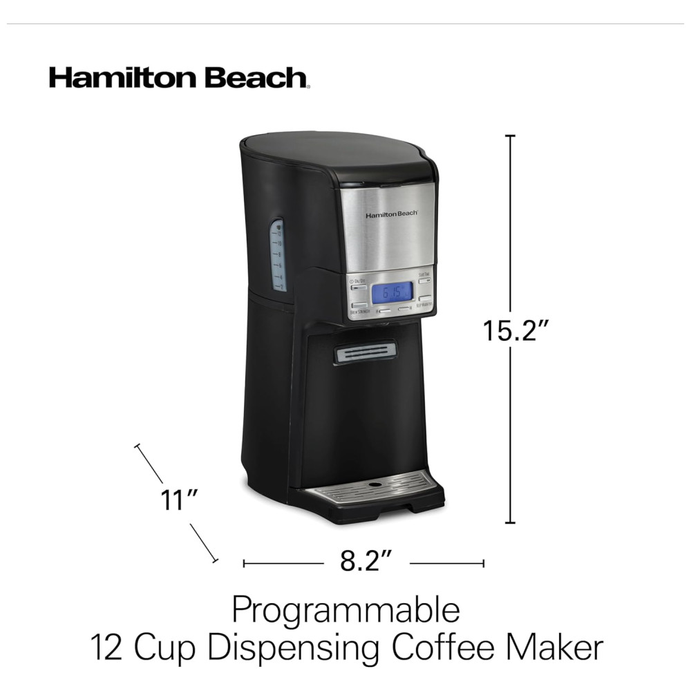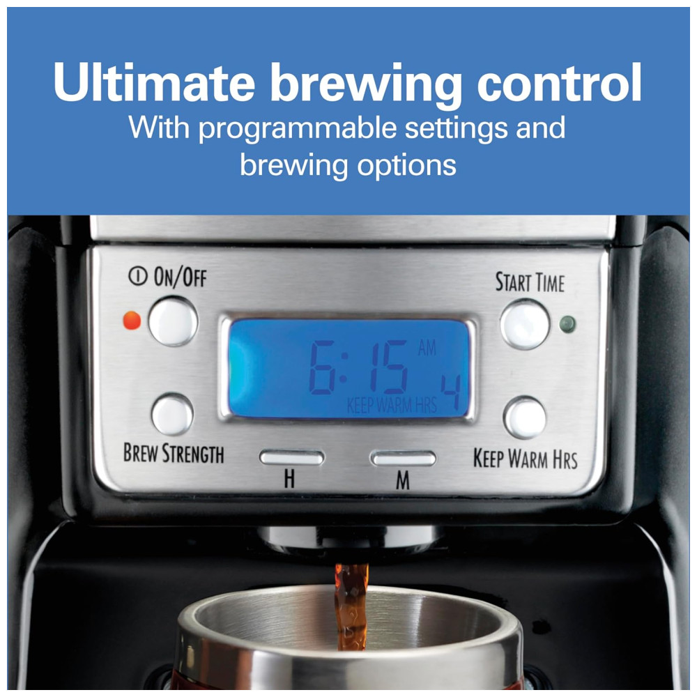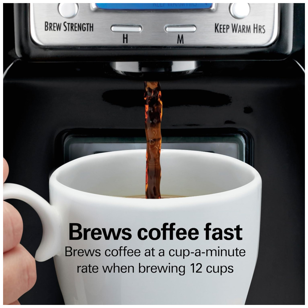 Máquina de Café Expresso Programável 12 Xícaras com Reservatório Cromado 110V 950W Hamilton Beach Preta