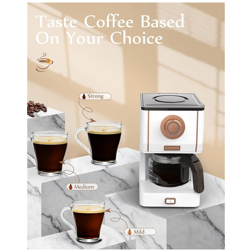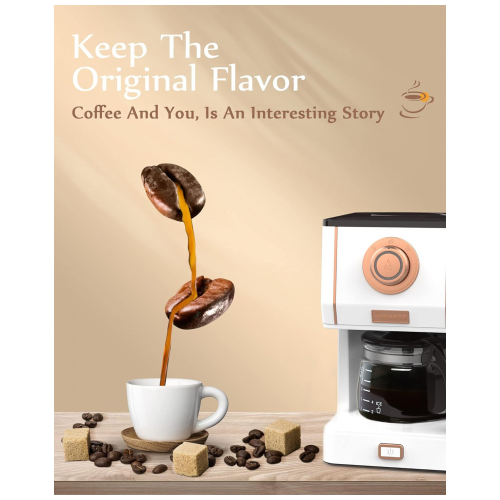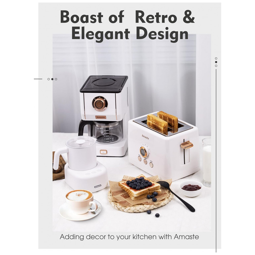 ESTA É DEFINITIVAMENTE UMA PEÇA DE ARTE ESSENCIAL PARA SUA VIDA DELICADA. AMASTE Retro Style Coffee Machine com cafeteira de vidro com design elegante, pode ornamentar perfeitamente sua cozinha, sala de estar e escritório. Esta cafeteira permite que você desfrute de seus tipos favoritos de café, como cappuccinos e lattes.