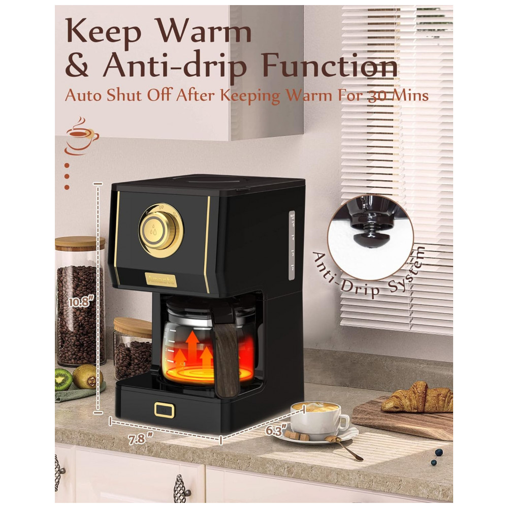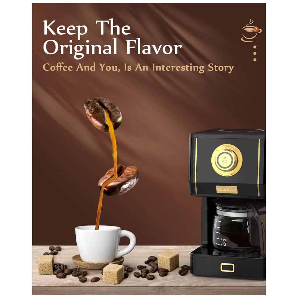 QUANDO SE TRATA DE MÁQUINAS DE CAFÉ QUE FUNCIONAM TÃO BEM QUANTO PARECEM, É DIFÍCIL SUPERAR A AMASTE. Nossa máquina de gotejamento manterá seu café acabado de fazer quente por 30 minutos para preservar o sabor após a preparação. Ao mesmo tempo, se não for usada por mais de 30 minutos, a cafeteira será desligada automaticamente para evitar o superaquecimento. Além disso, para ajudá lo a determinar quanto café usar, a jarra de vidro e o tanque de água são marcados com nível