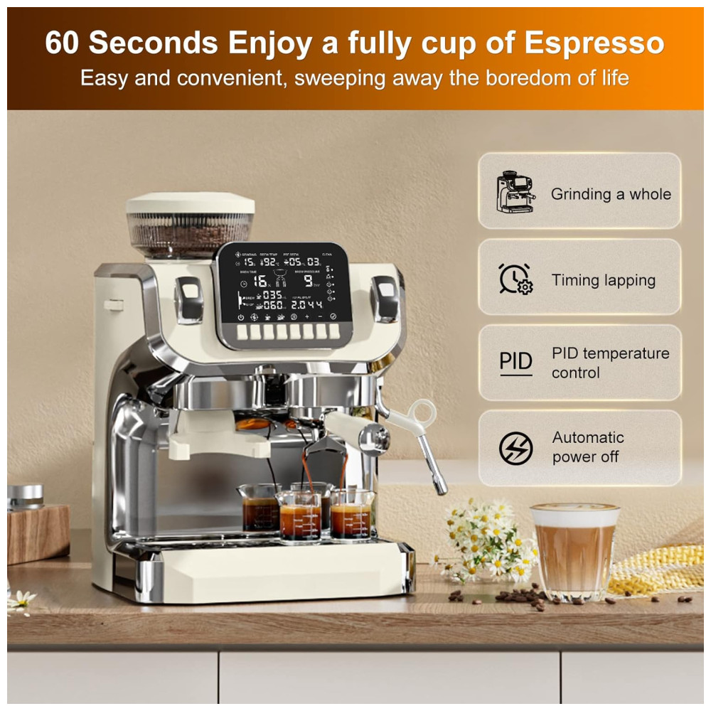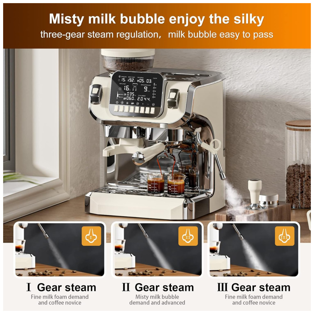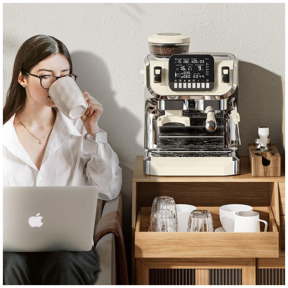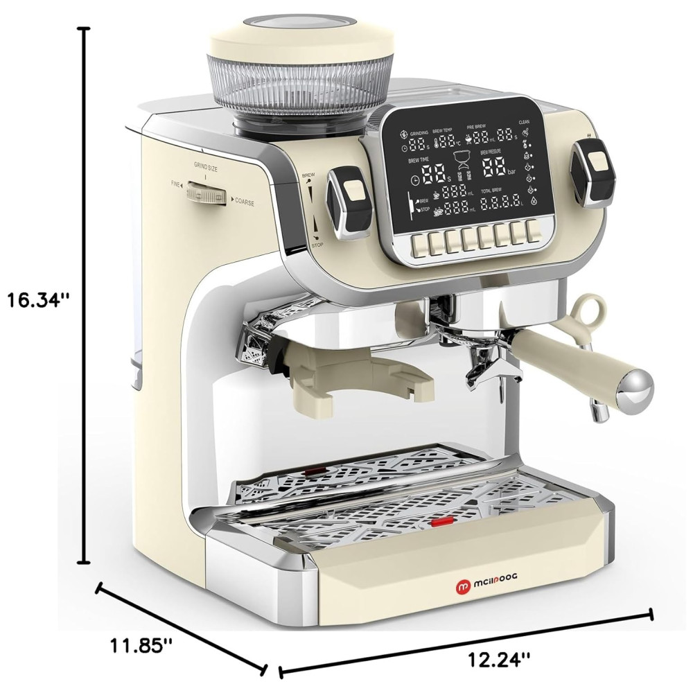 Máquina de Café Expresso Semi Automática 15 Bar com Moedor Embutido e Bocal de Leite 110V 1450W Mcilpoog TC520 Bege