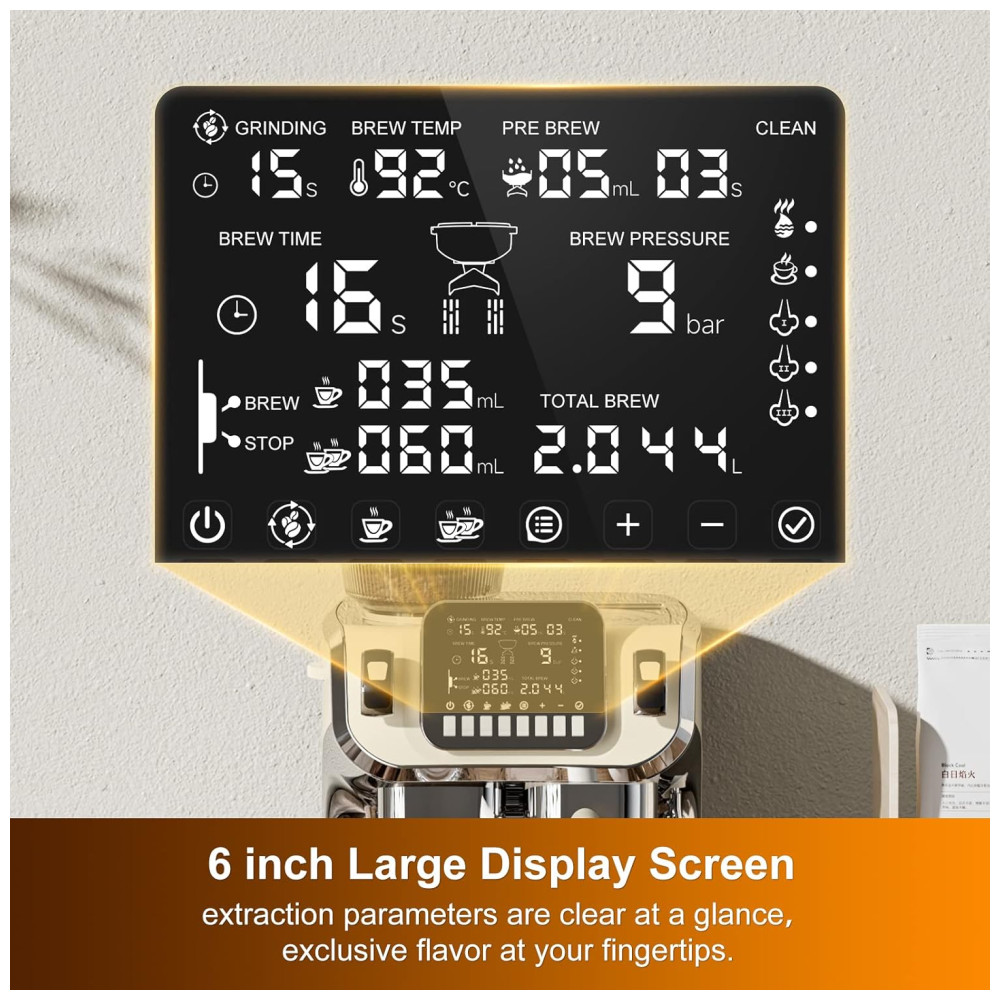 Prepare seu café especial em casa com facilidade e praticidade com a máquina de café expresso Mcilpoog. Com uma tela grande de 15 cm, você pode facilmente ajustar a pressão de extração, tempo de extração e outros parâmetros para obter o sabor exclusivo na ponta dos dedos. O design de botão de piano permite operação sem estresse.