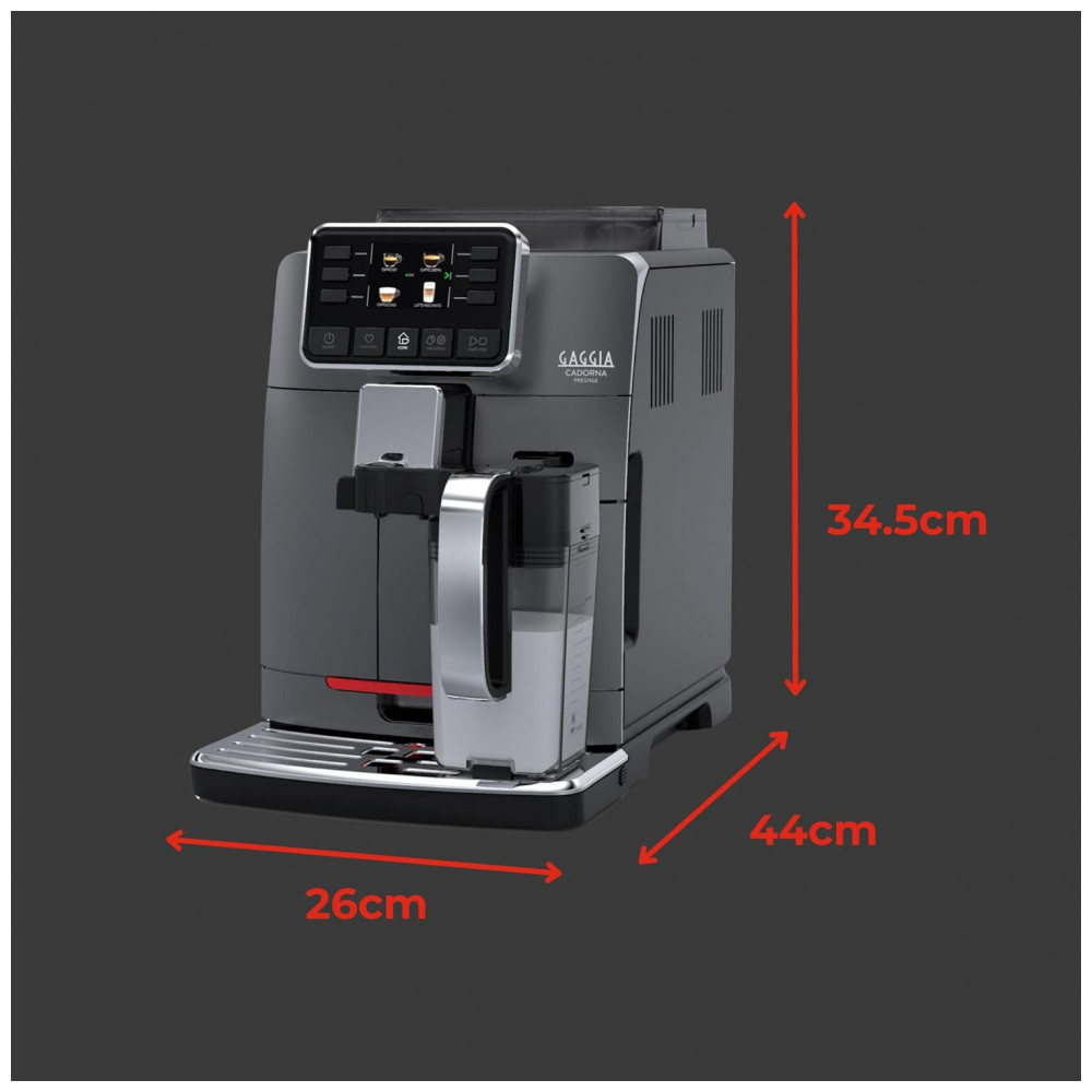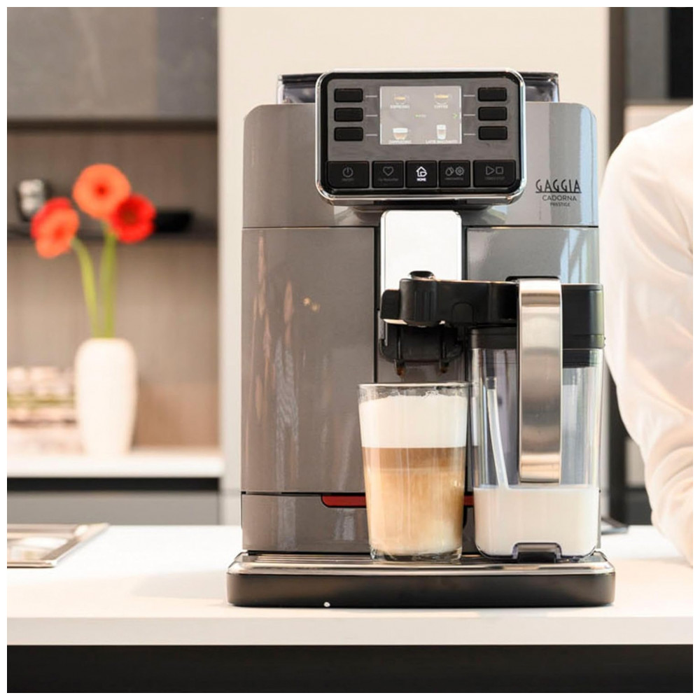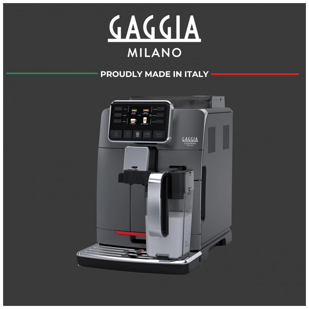 Máquina de Café Expresso Super Automática com Vaporizador 14 Bebidas Pré-Programadas e Jarra de Leite Integrada 110V 1400W Gaggia Cadorna Prestige Cinza