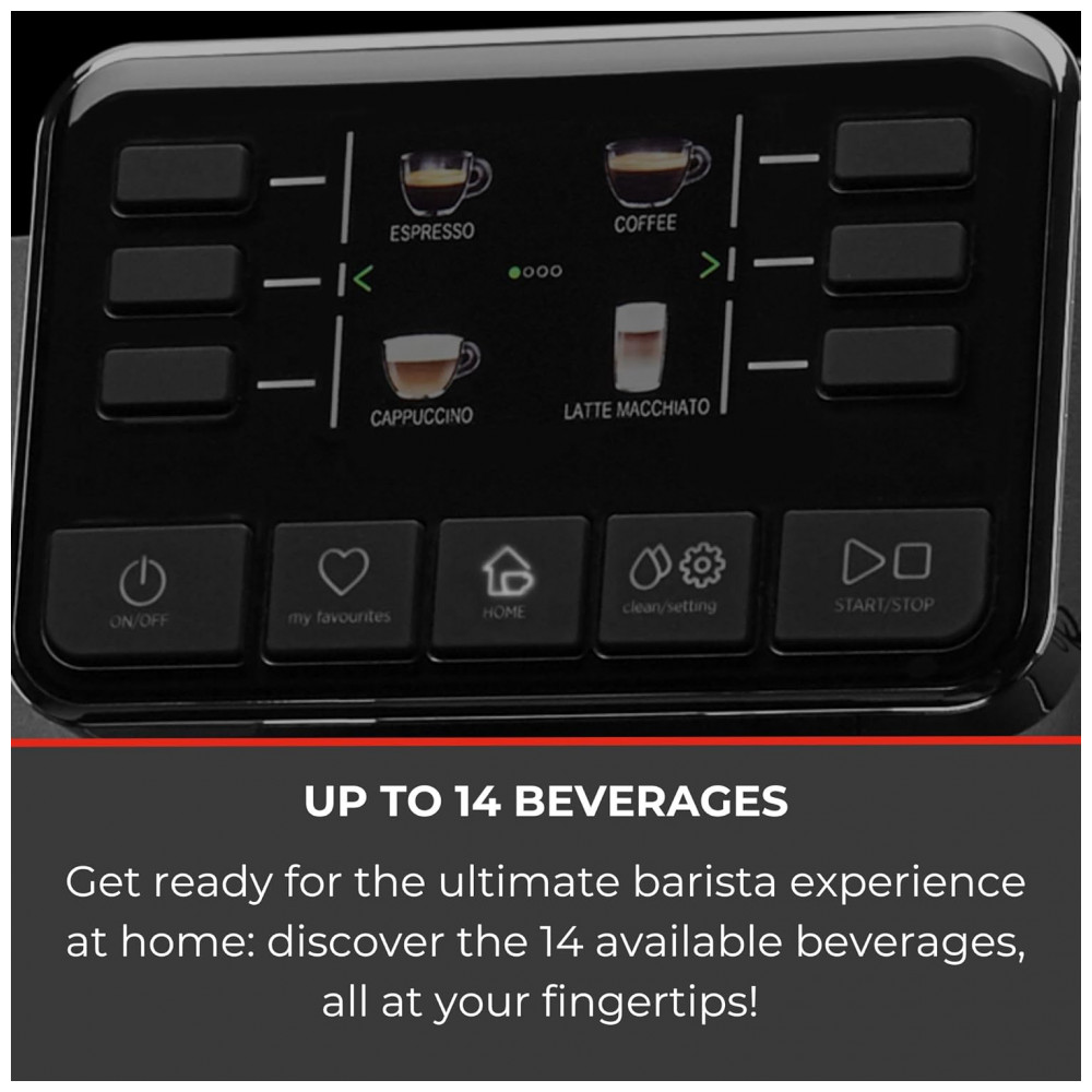 A interface de usuário é intuitiva, composta por um display TFT colorido que facilita a navegação pelas 14 opções de bebida, com botões retro iluminados para uma operação simples e eficiente. Os ajustes personalizáveis permitem criar sua bebida favorita no estilo barista, adaptando cada detalhe ao seu gosto pessoal.