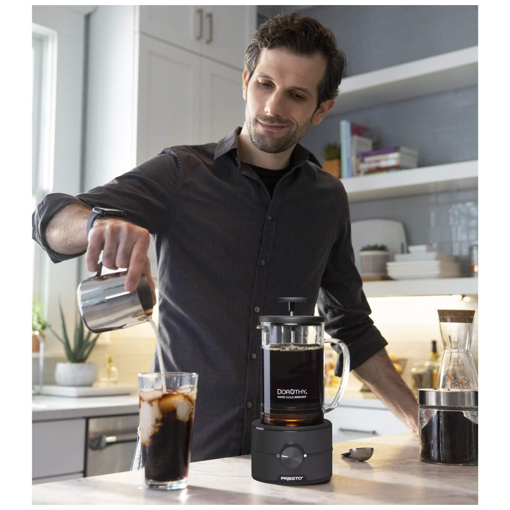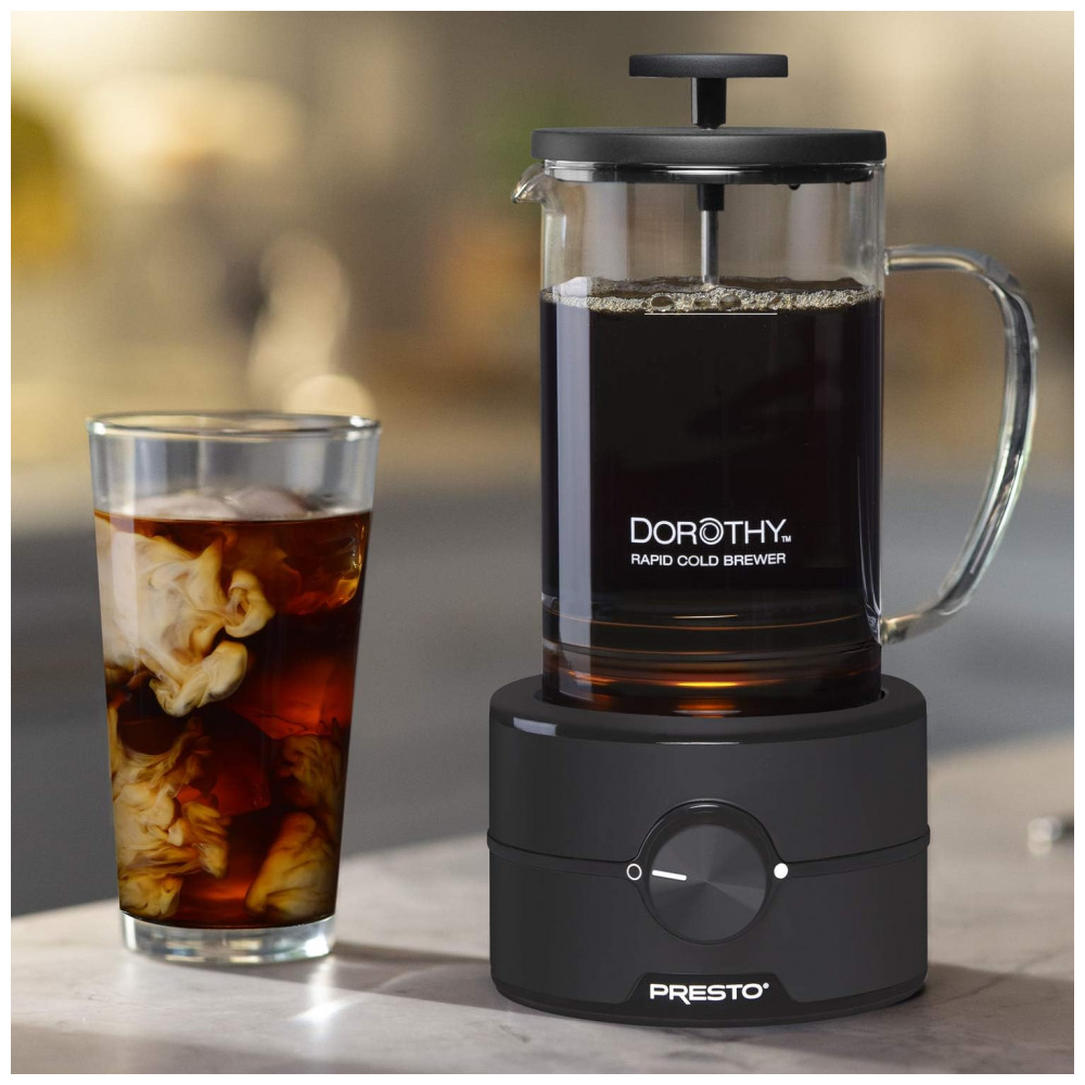 Faça um delicioso café gelado em casa em apenas 15 minutos. A cafeteira gelada rápida Dorothy oferece um toque fresco na bebida gelada girando rapidamente os grãos de café em um tornado de água para uma rápida extração de sabor.