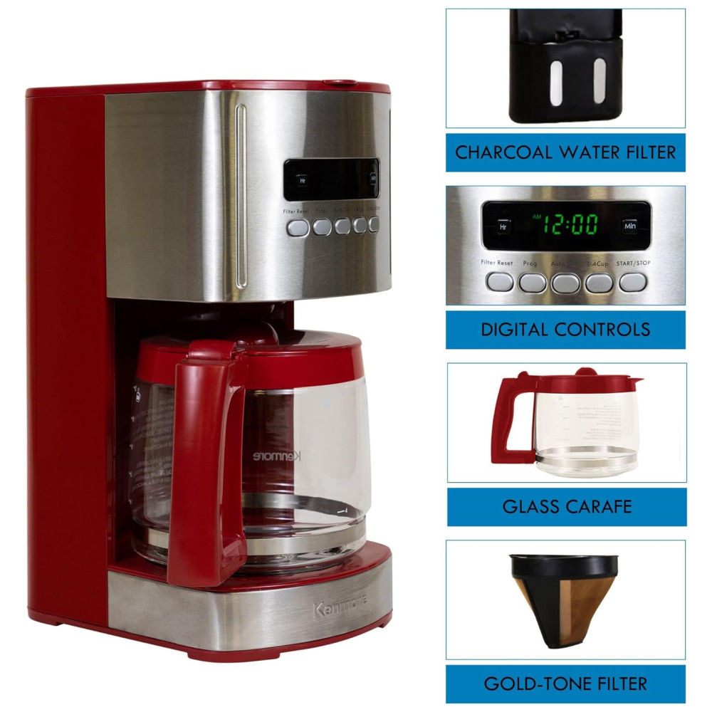 Máquina de Café Kenmore 12 xícaras com filtro reutilizável timer programável controle de aroma jarra de vidro filtro de carvão Koolatron