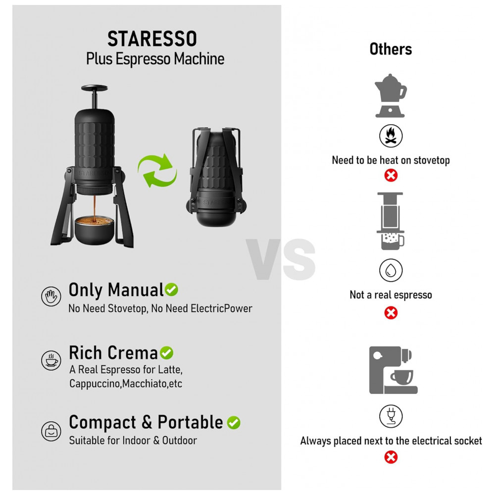 Máquina de Café Portátil Manual Ideal para Viagens STARESSO Plus Preto